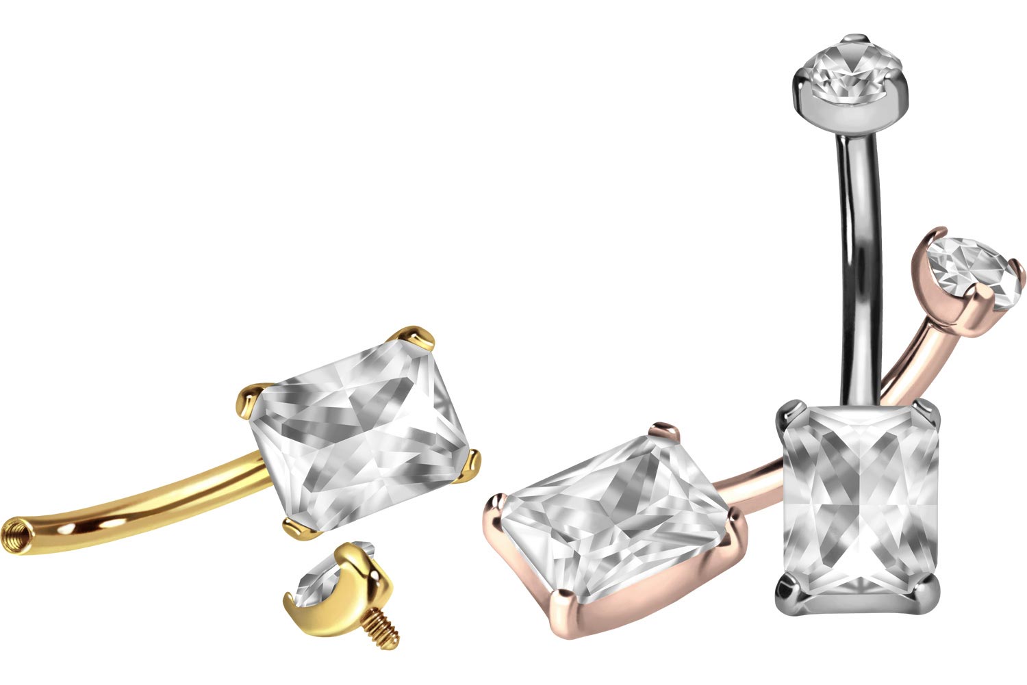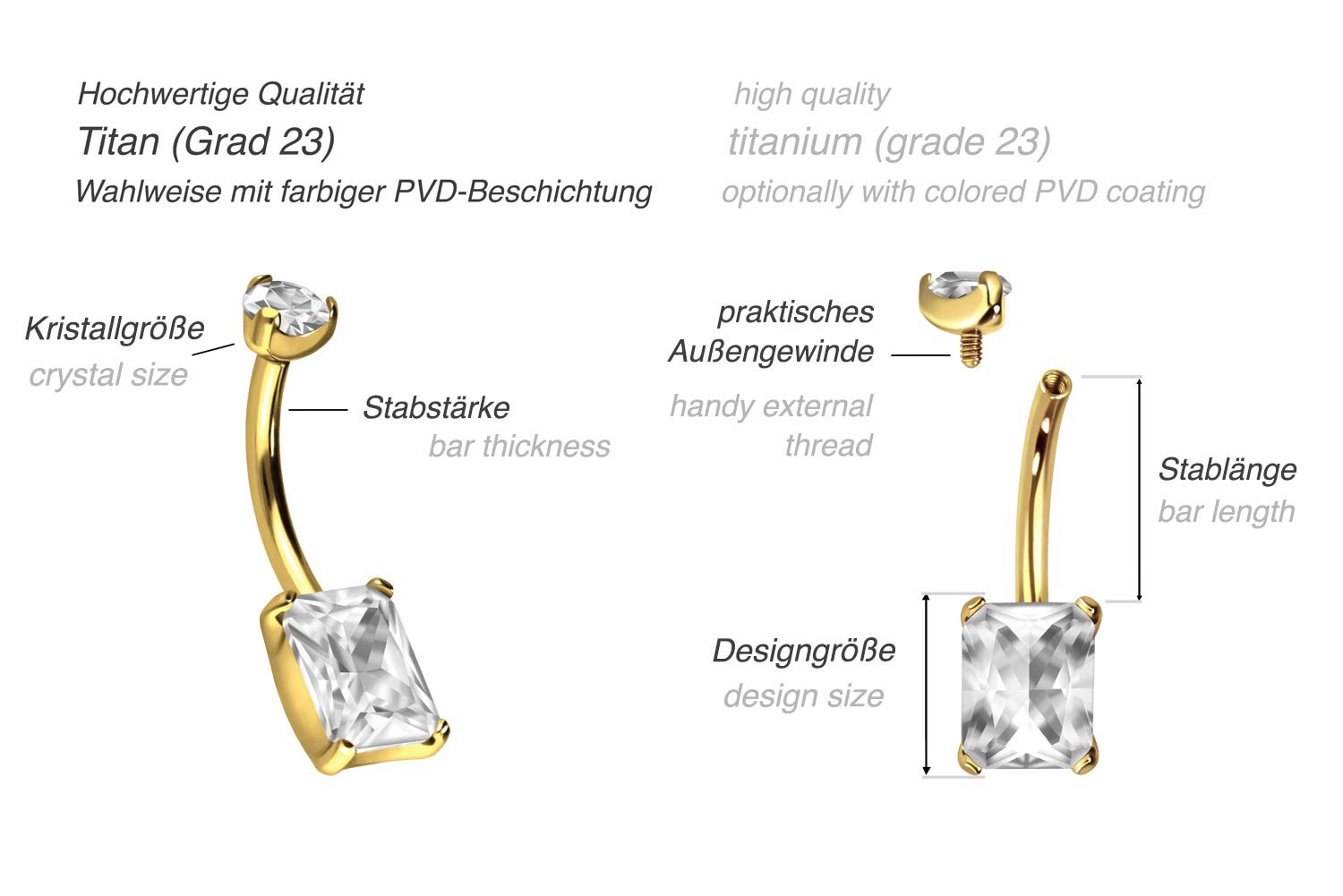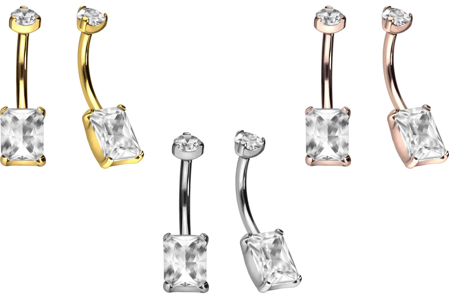 Titan - Bauchnabelpiercing mit Innengewinde eingefasster rechteckiger Kristall