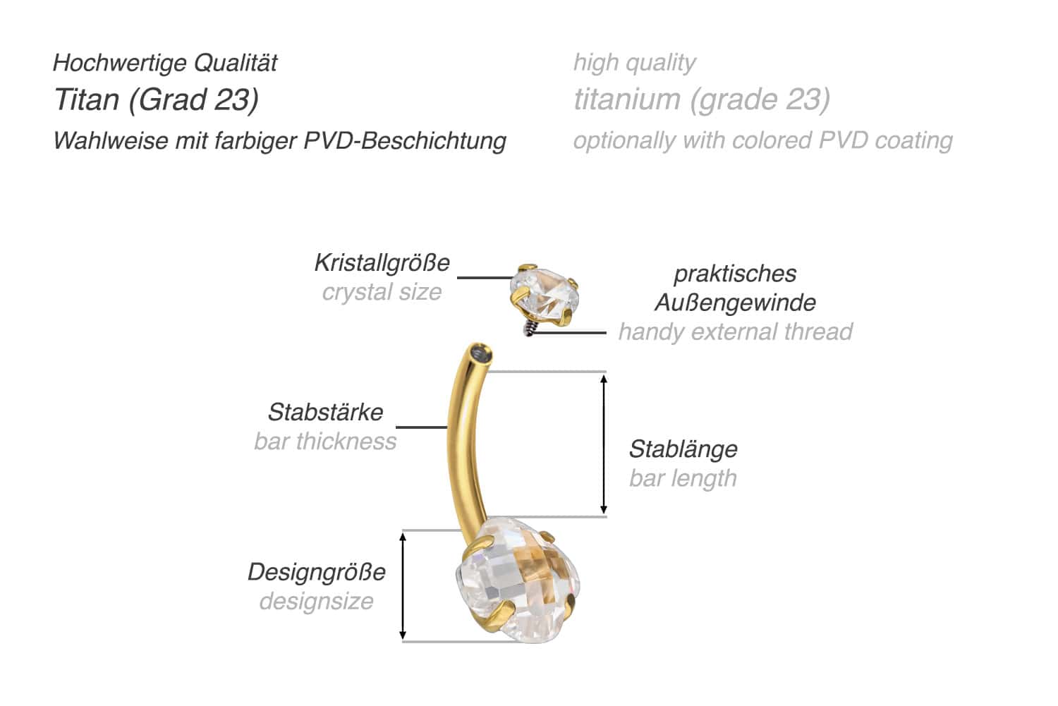 Dieses schimmernde Bauchnabelpiercing besteht aus hochwertigem Titan, zu