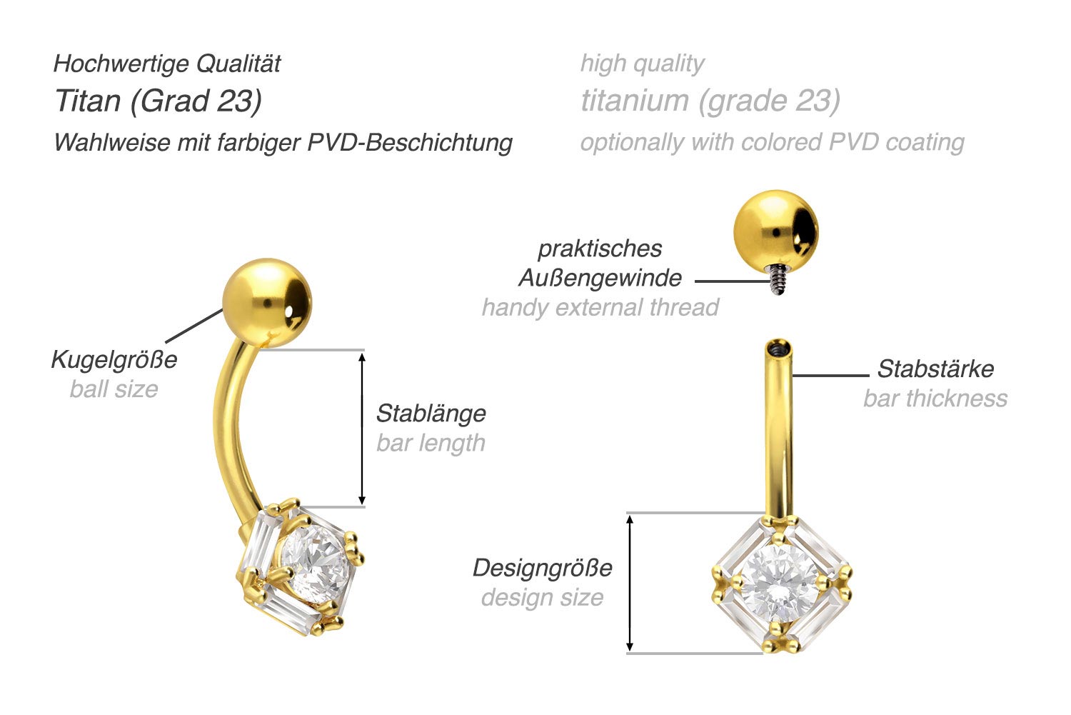 Dieses schimmernde Bauchnabelpiercing besteht aus hochwertigem Titan, zu