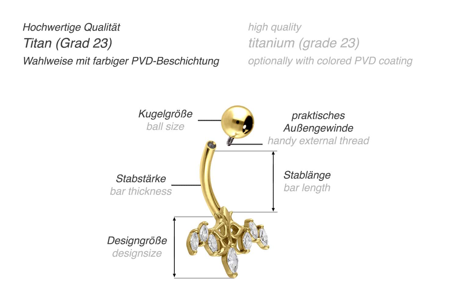 Dieses schimmernde Bauchnabelpiercing besteht aus hochwertigem Titan, zu