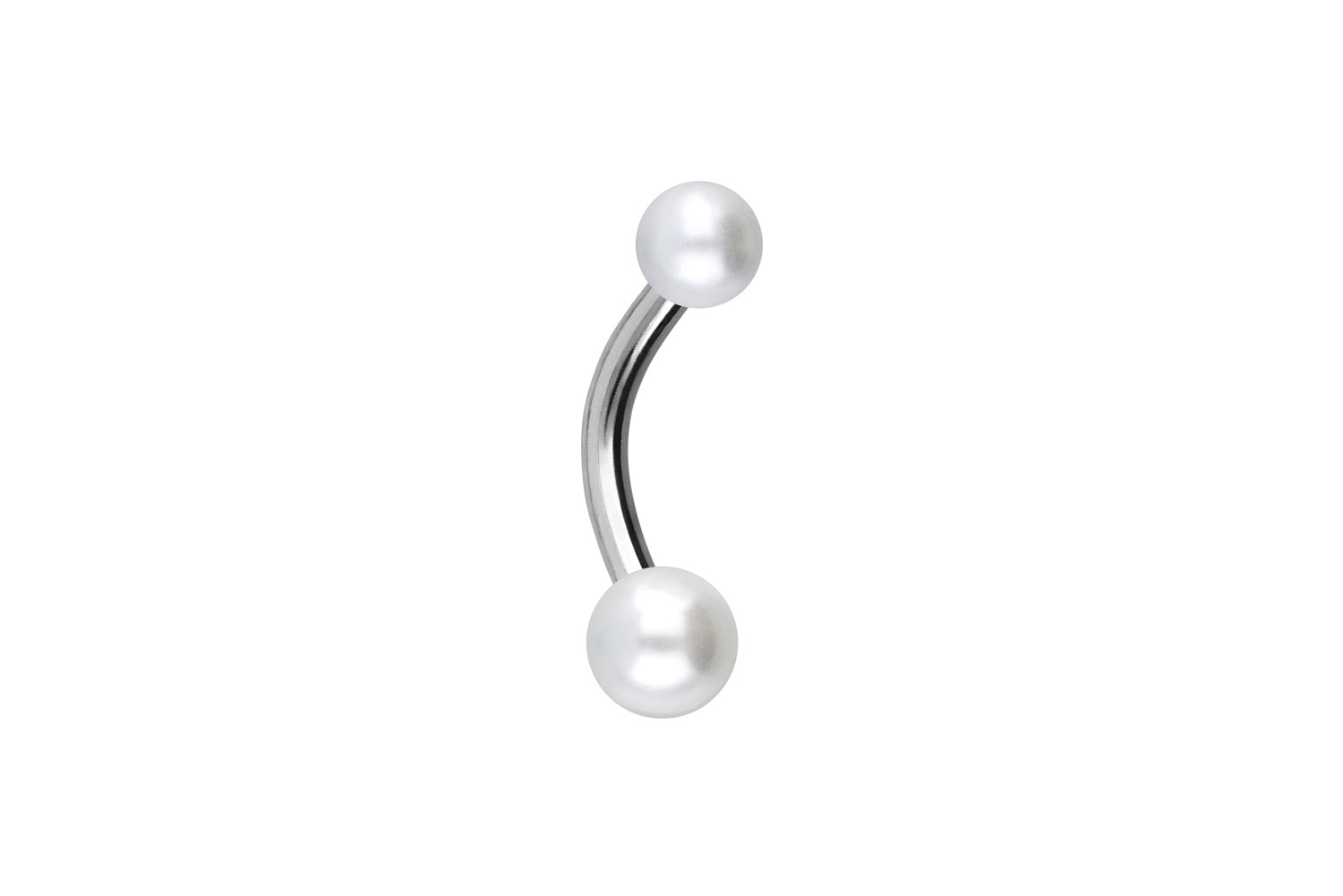 mit PVD-Beschichtung gewährleistet wird. Das Bananabell verfügt über zwei zeitlos schöne synthetische Perlen mit Außengewinden, hat eine Stabstärke von 1,6 mm und