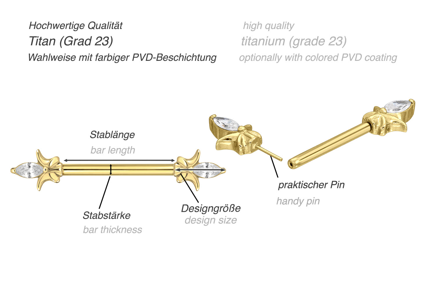 Titan Barbell mit Push Fit KRISTALLSPITZE