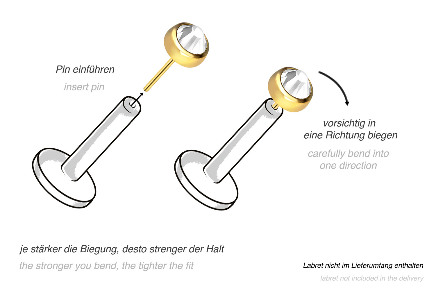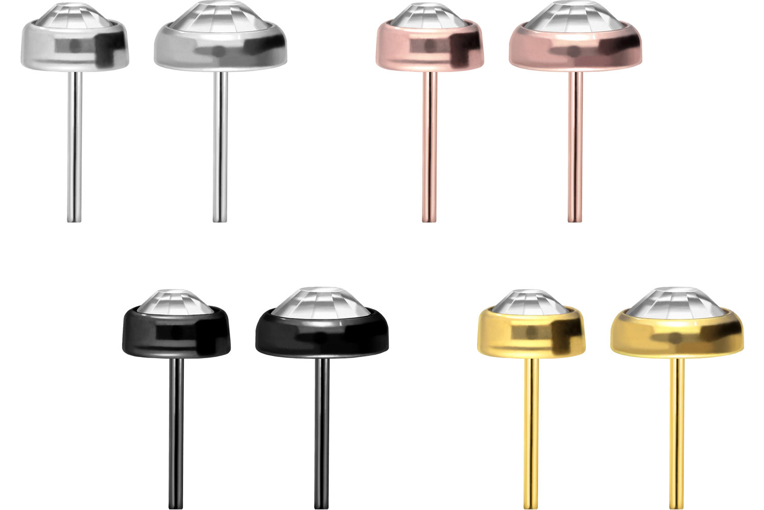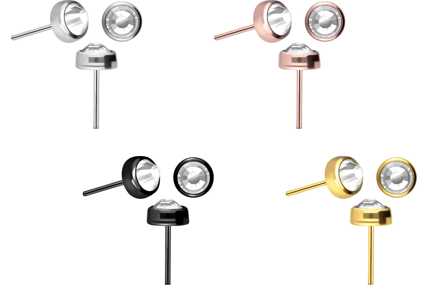 Dieser einzigartige Push Pin Aufsatz in Form einer Disc mit funkelndem Kristall wurde speziell für unsere Push Fit Piercings entwickelt und besteht aus hochwertigem Titan, das sich unter anderem