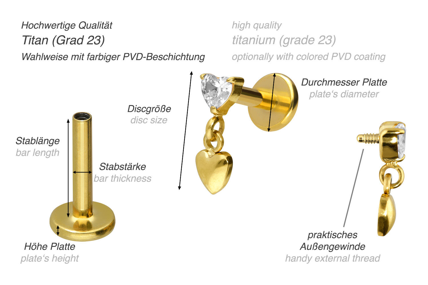 Dieses einzigartige Labret ist aus hochwertigem Titan gefertigt, das