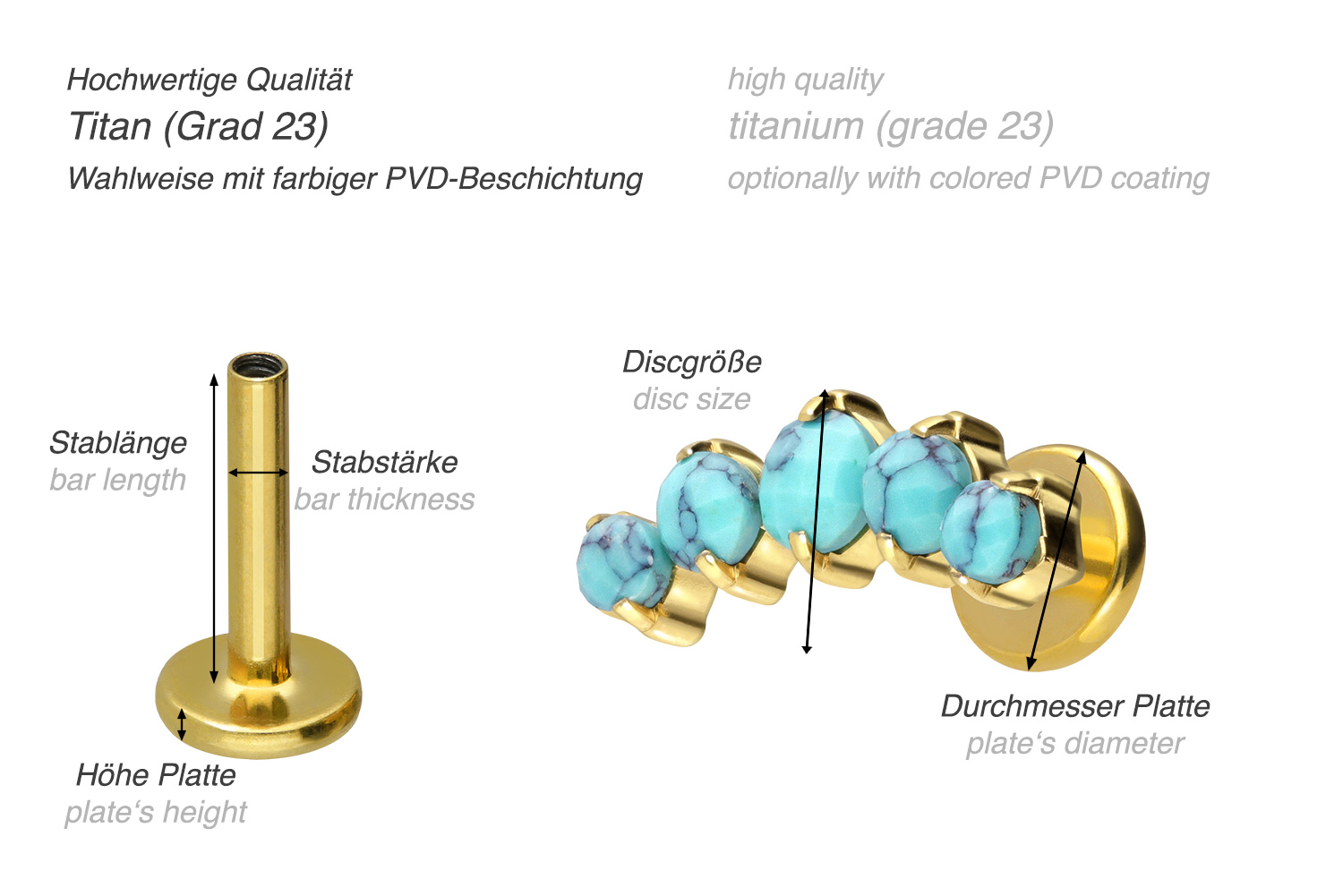 PVD-Beschichtung gewährleistet wird. Das Labret verfügt über einen