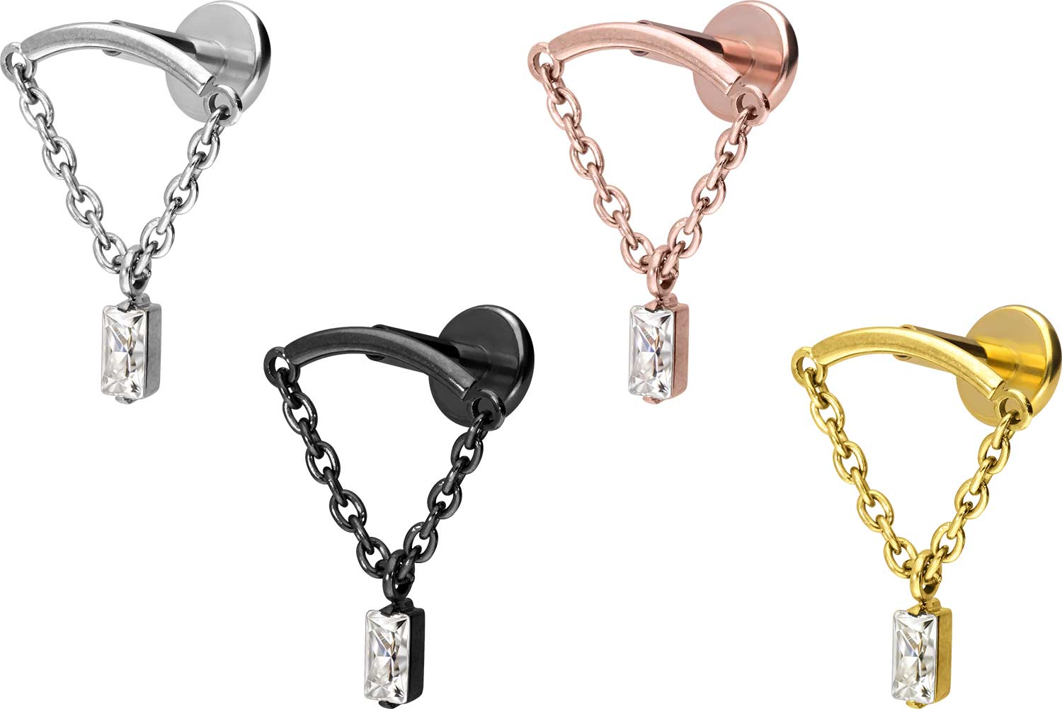 Titan - Labret mit Innengewinde Bogen + Kette + Kristallrechteck