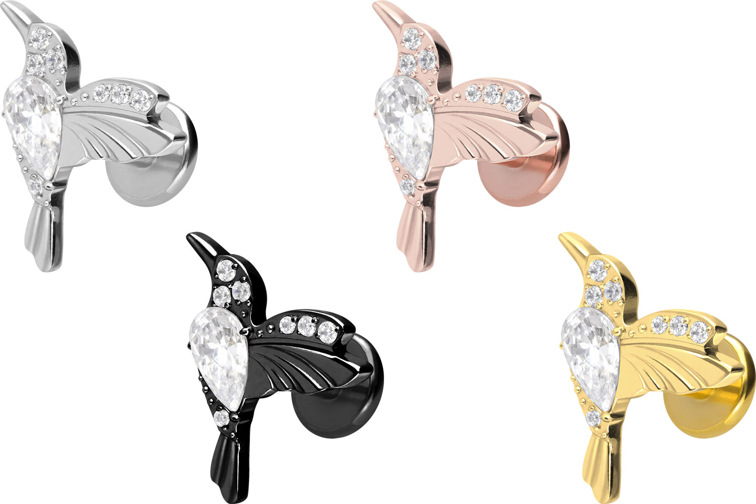 zeitlos schönen Schraubaufsatz mit Außengewinde in Form eines Kolibris, hat eine Stabstärke von entweder 1,2 oder 1,6 mm