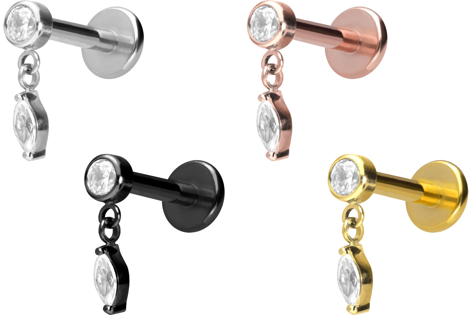 Titan Labret mit Innengewinde KRISTALL + KRISTALLTROPFEN
