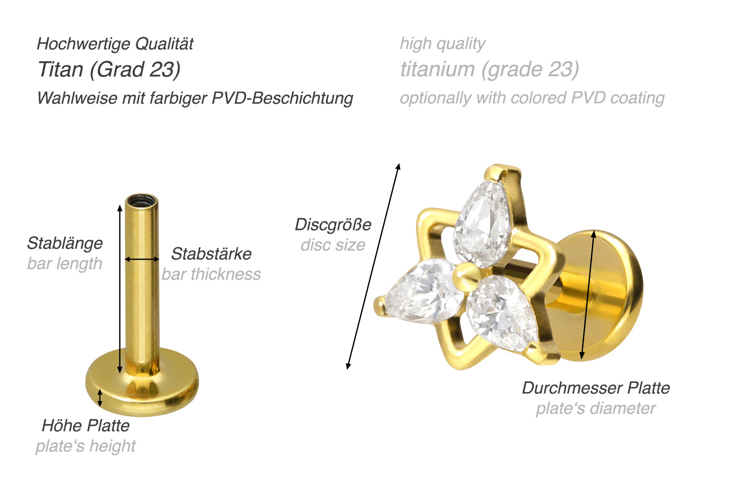 Titan Labret mit Innengewinde KRISTALLBLUME
