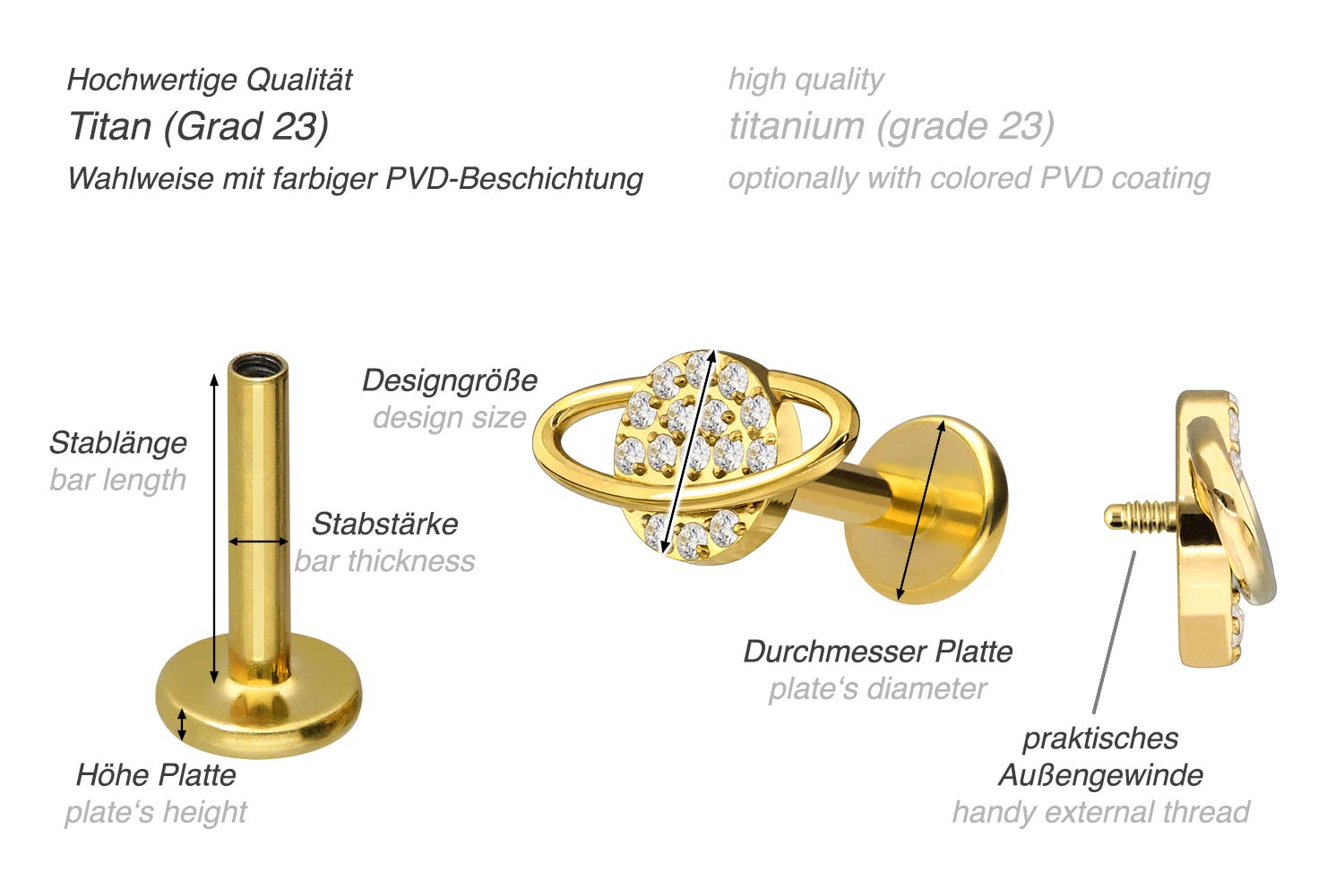 Dieses einzigartige Labret ist aus hochwertigem Titan gefertigt, das