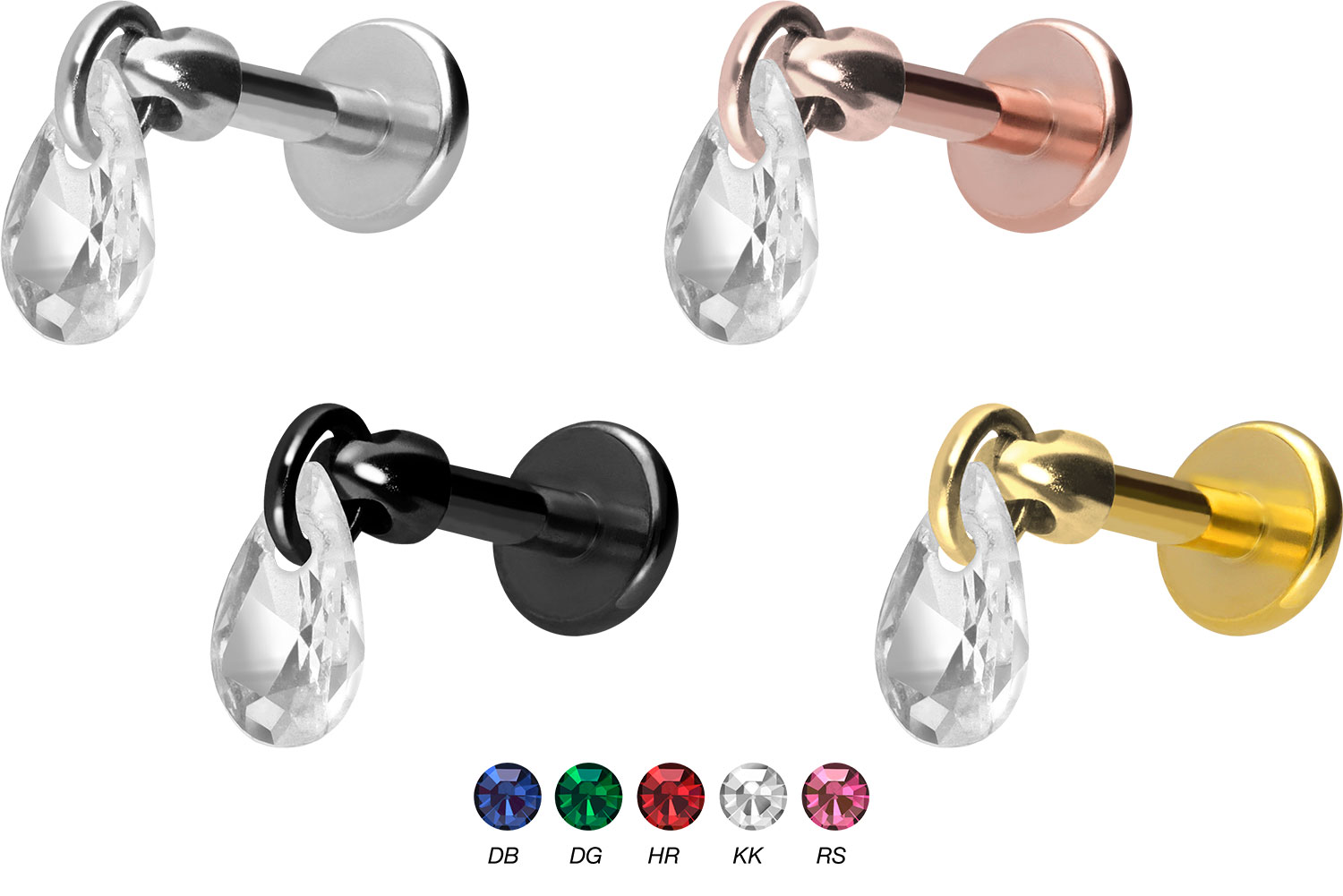Titan Labret mit Innengewinde KRISTALLTROPFEN