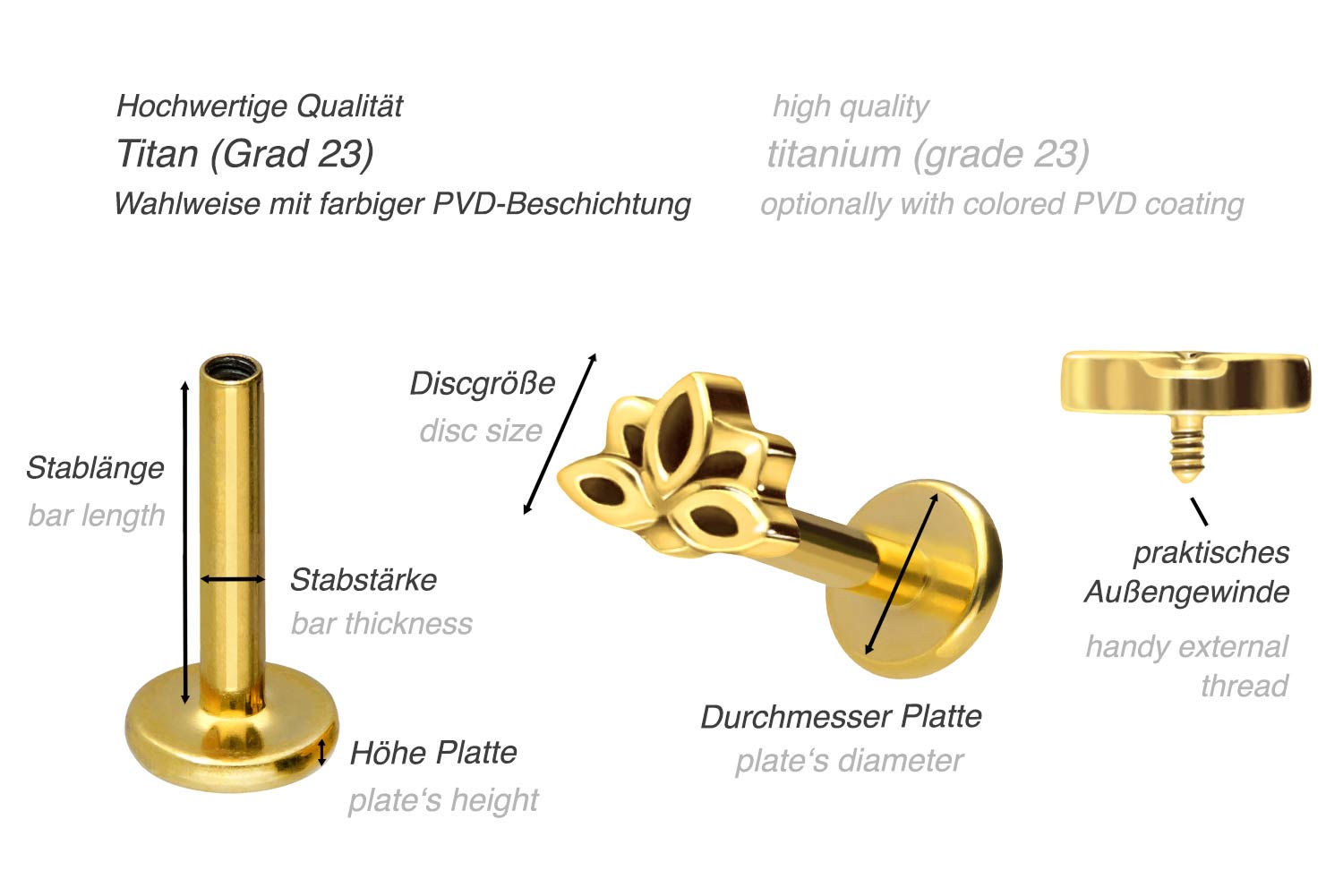 PVD-Beschichtung gewährleistet wird. Das Labret verfügt über einen