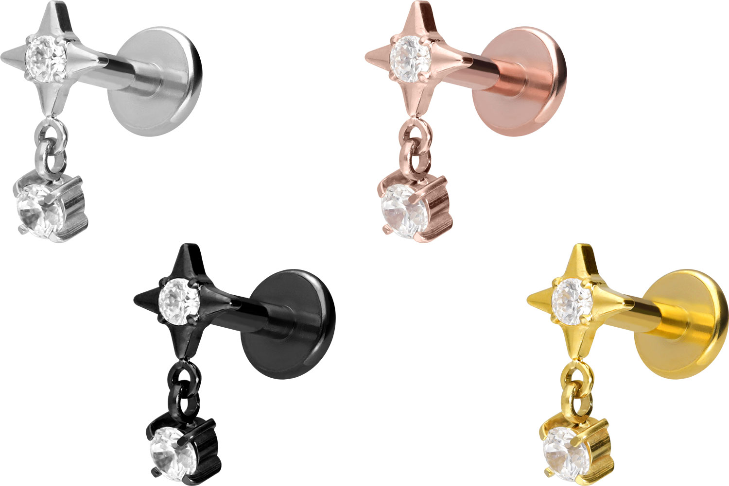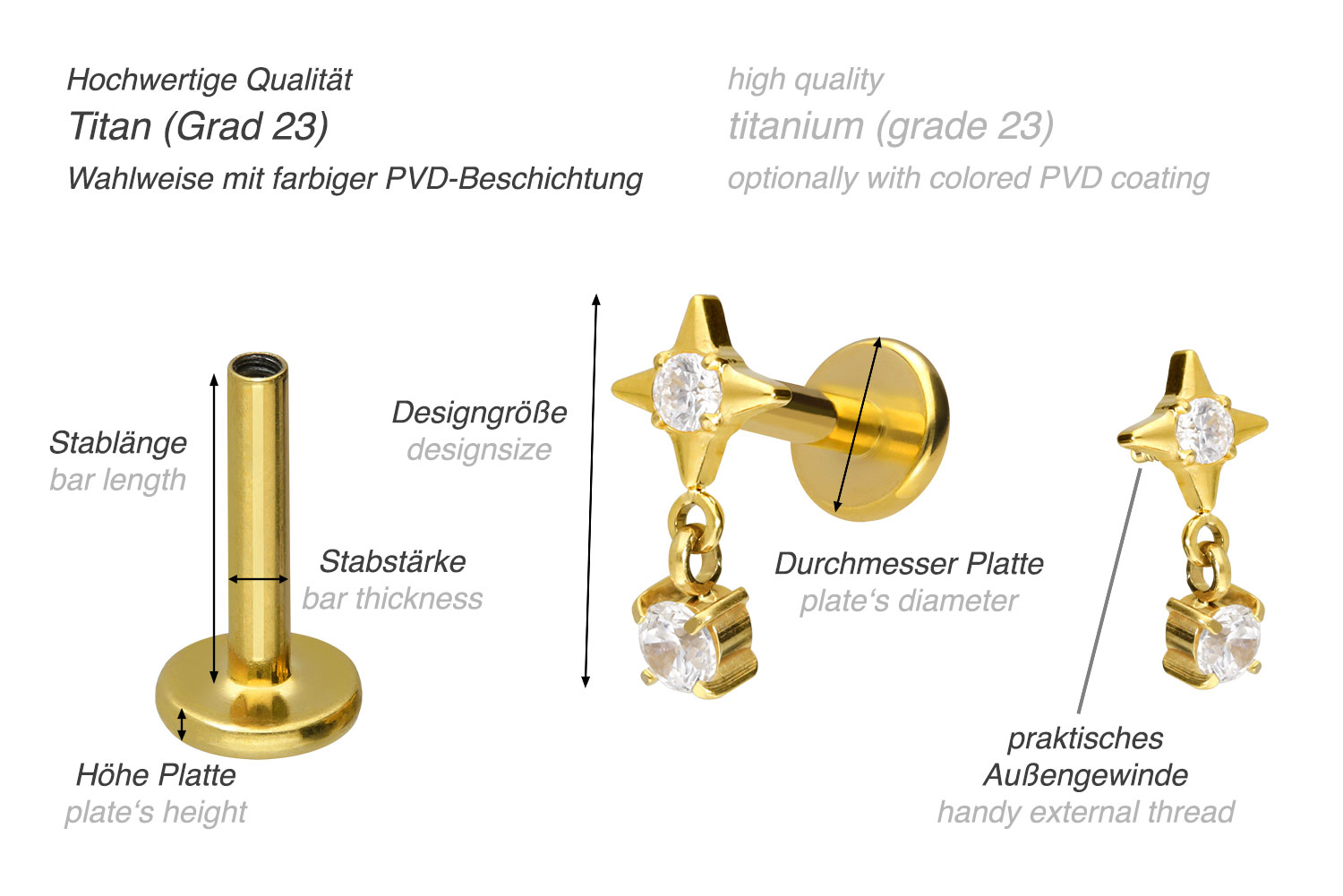 Titan Labret mit Innengewinde STERN + KRISTALL