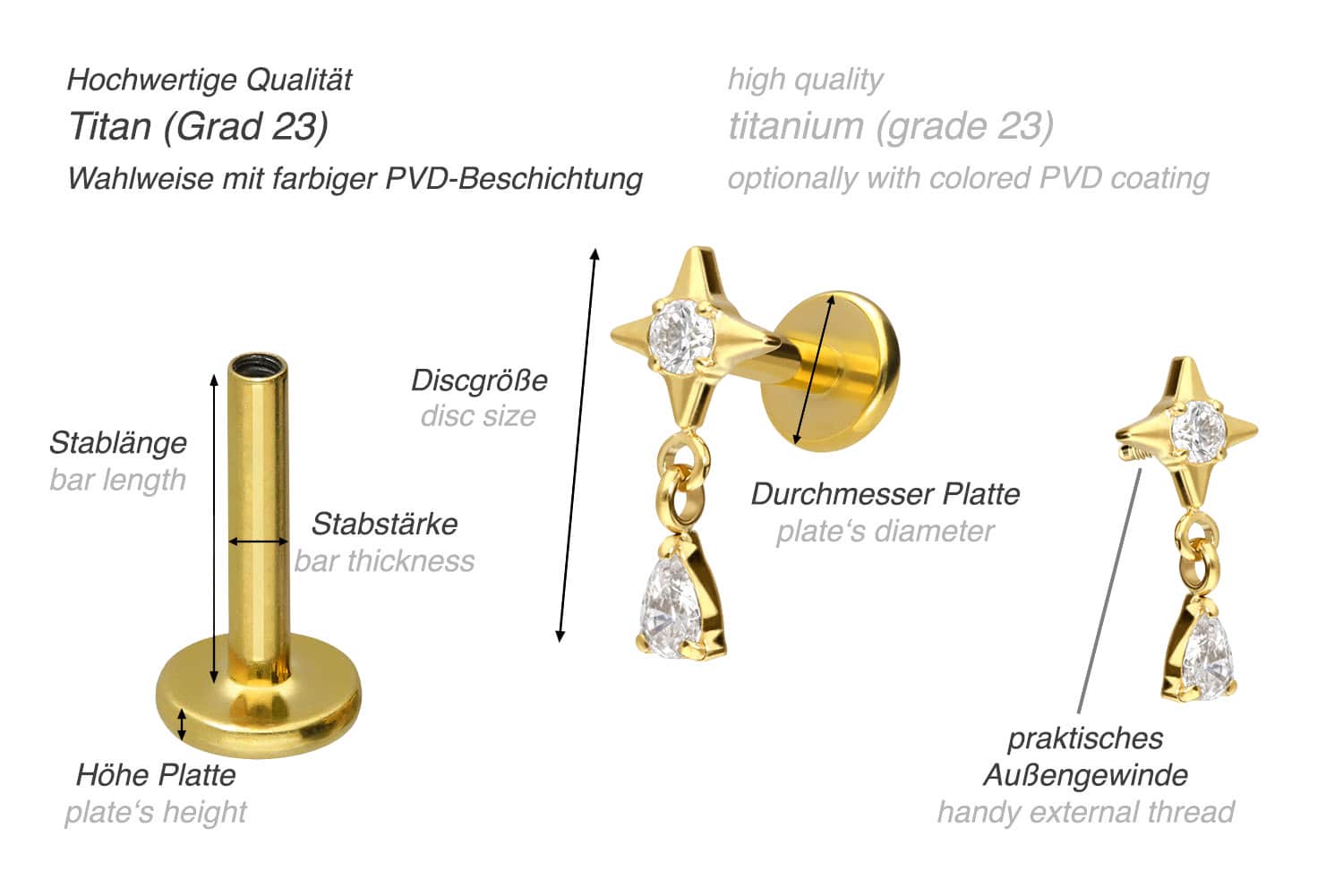PVD-Beschichtung gewährleistet wird. Das Labret verfügt über einen