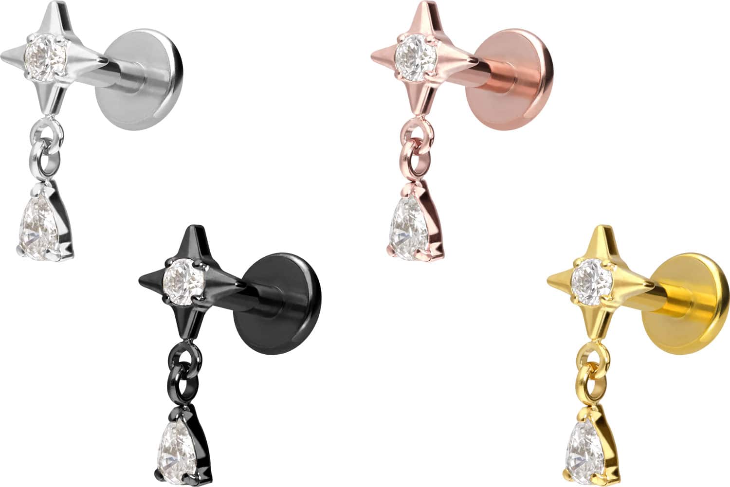 Titan - Labret mit Innengewinde Stern + Kristalltropfen