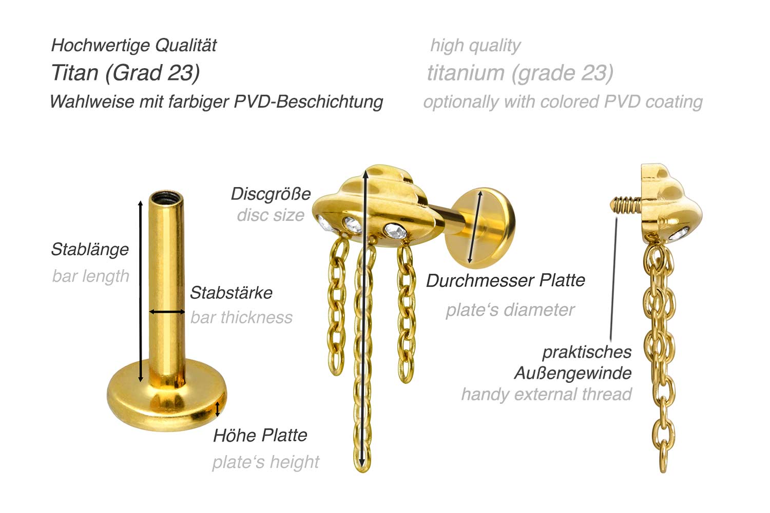 Titan Labret mit Innengewinde UFO + KETTE + KRISTALLE