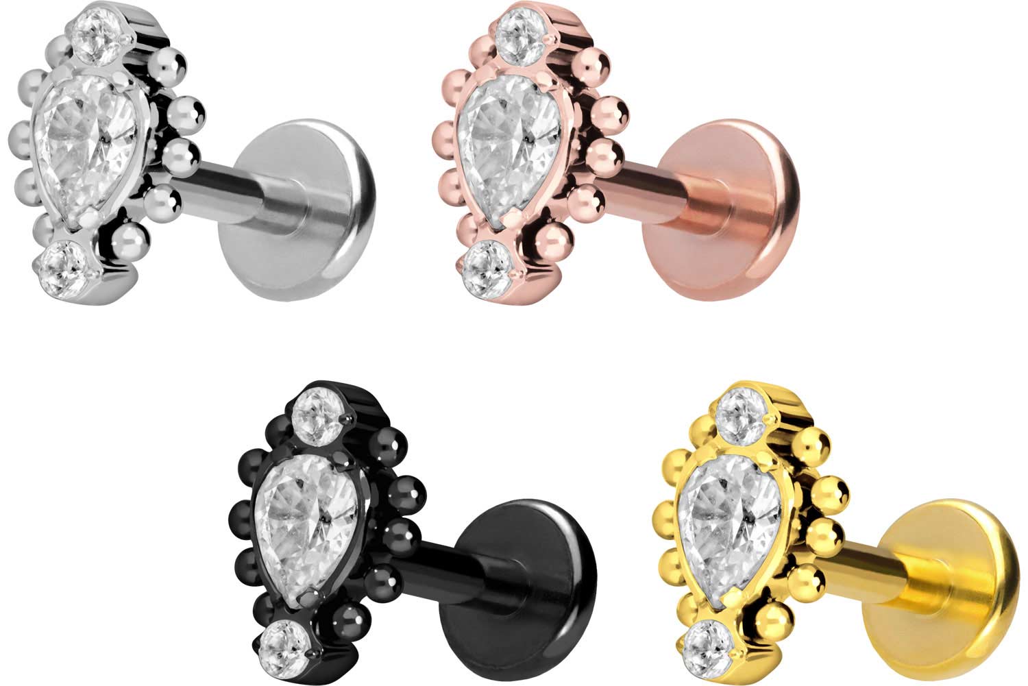 Titan - Labret mit Push Fit 3 eingefasste Kristalle + Kugeln