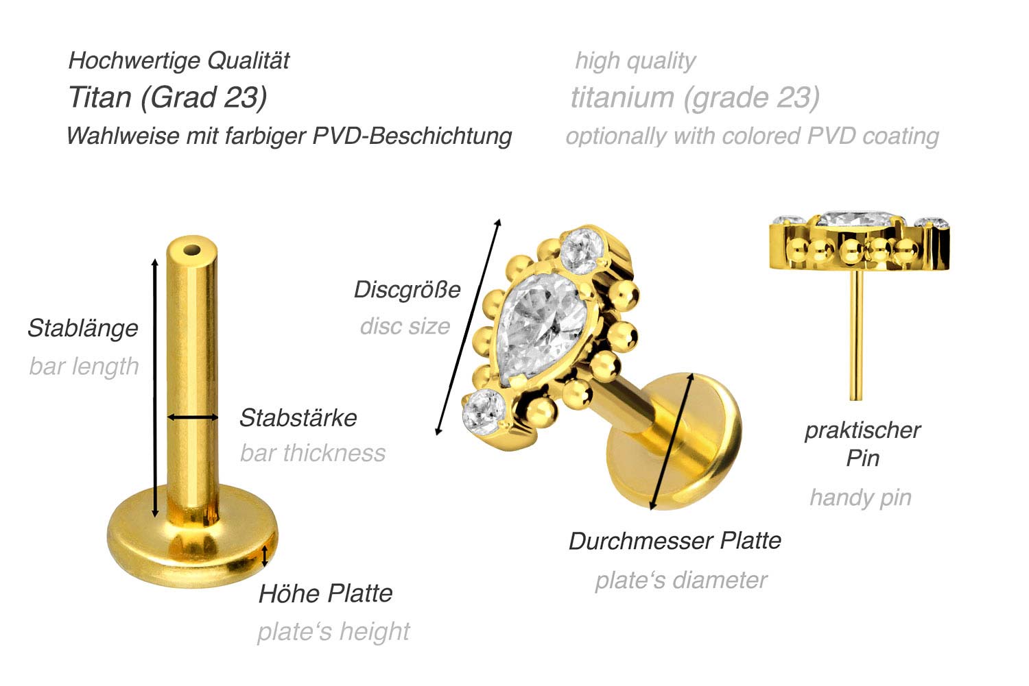 Dieses einzigartige Labret ist aus hochwertigem Titan gefertigt, das
