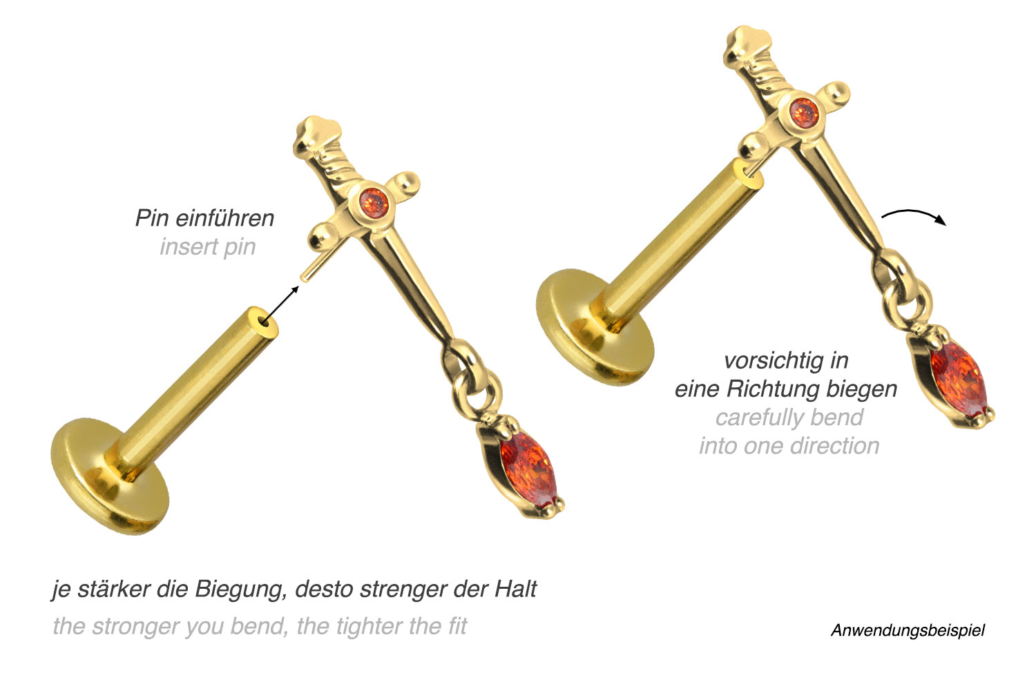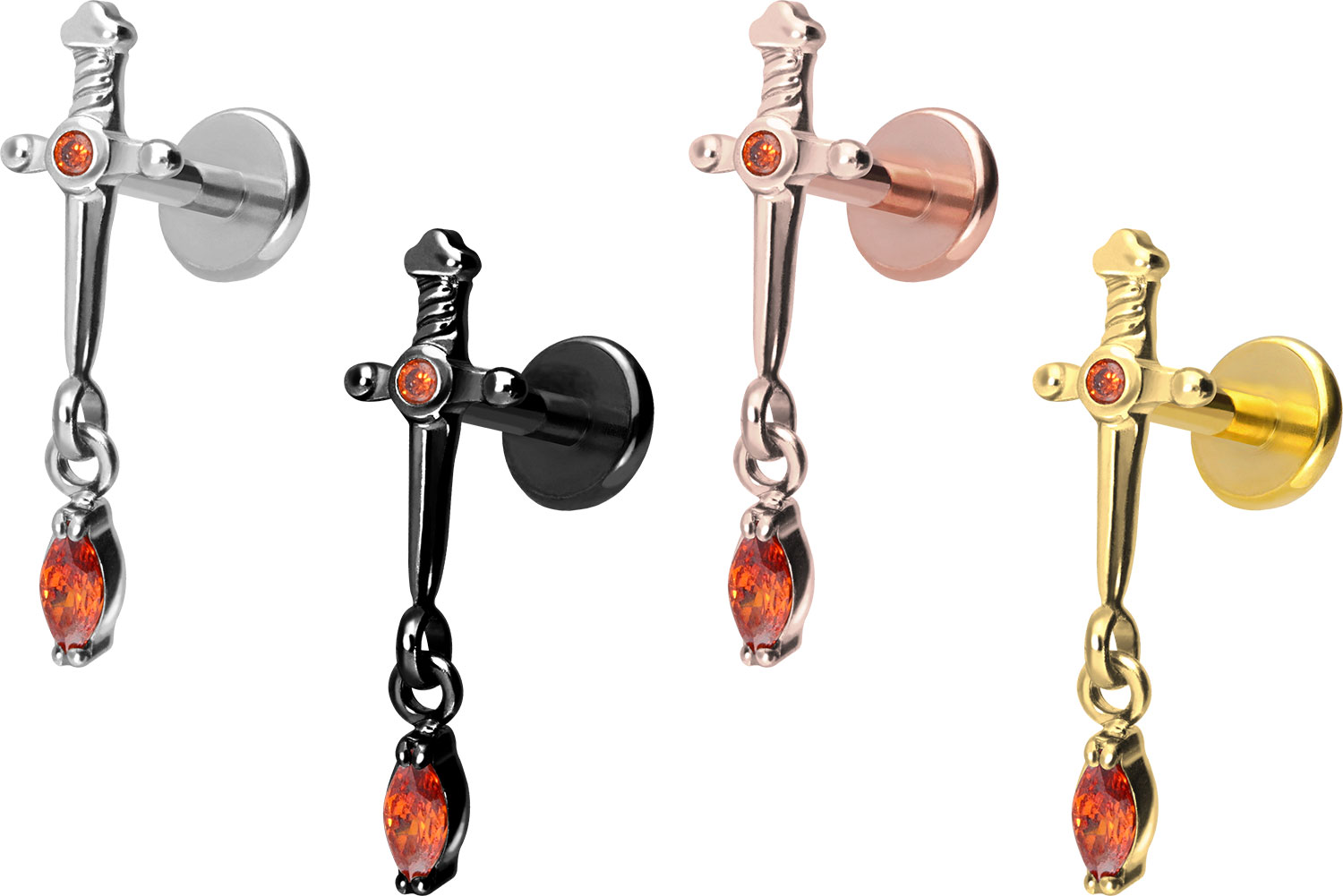 Titan - Labret mit Push Fit Dolch + Kristalltropfen