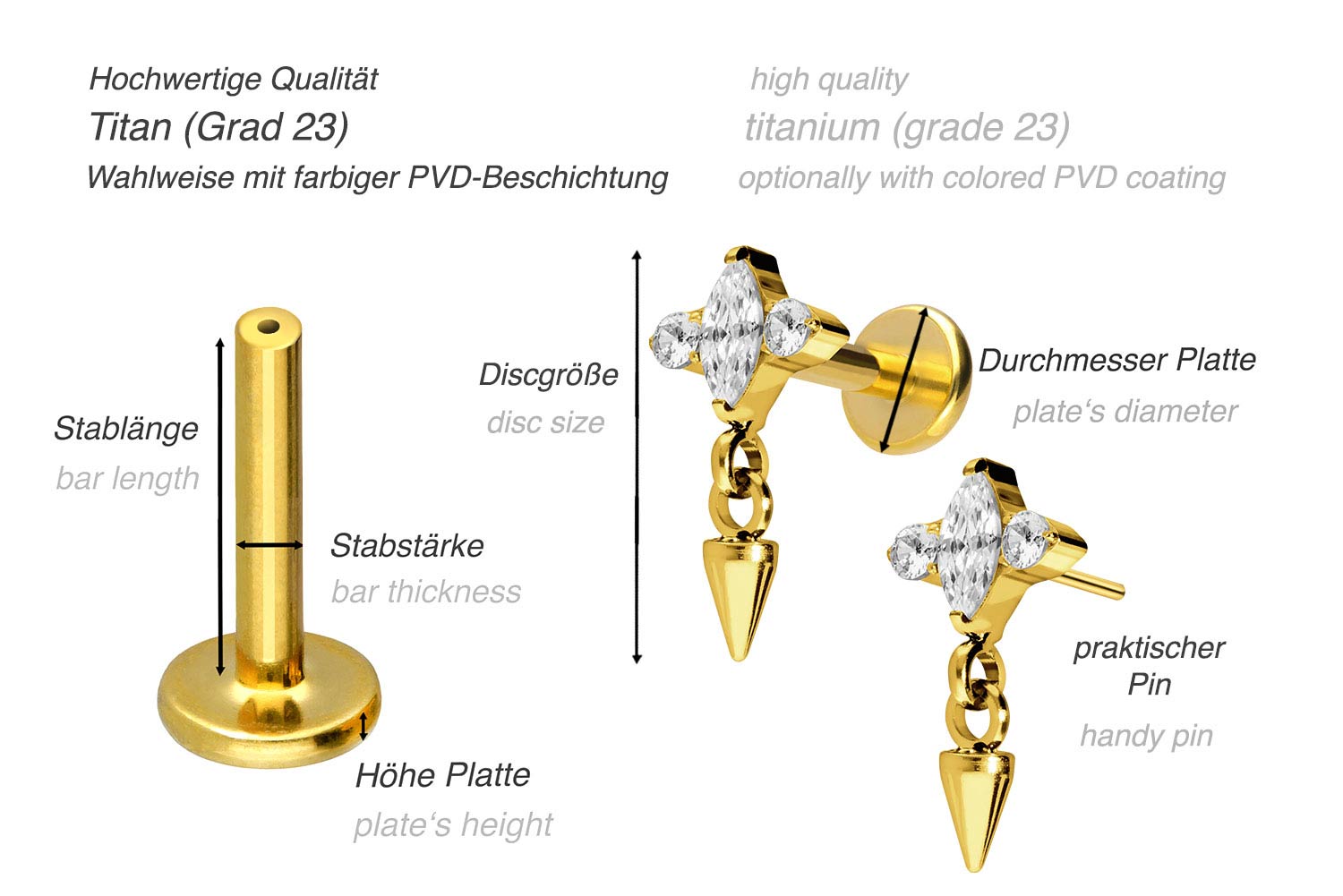 PVD-Beschichtung gewährleistet wird. Das Labret verfügt über einen