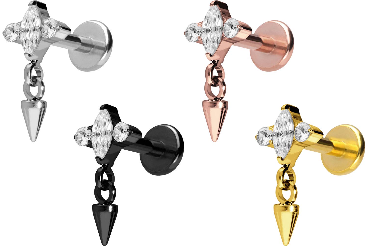 Titan Labret mit Push Fit EINGEFASSTE KRISTALLE + SPITZE