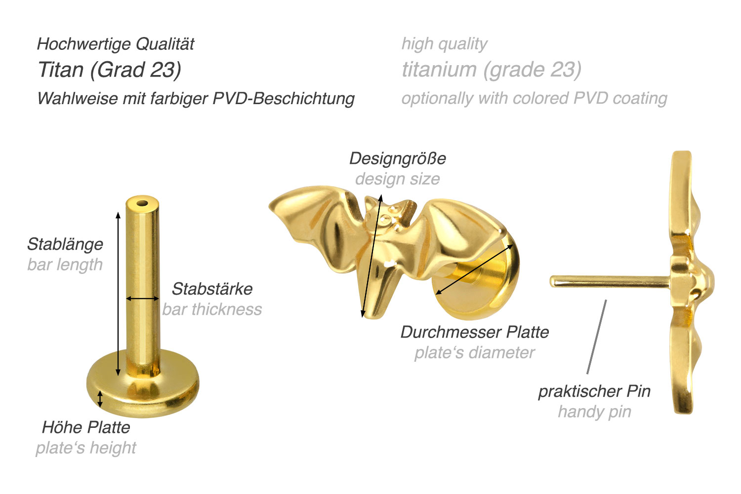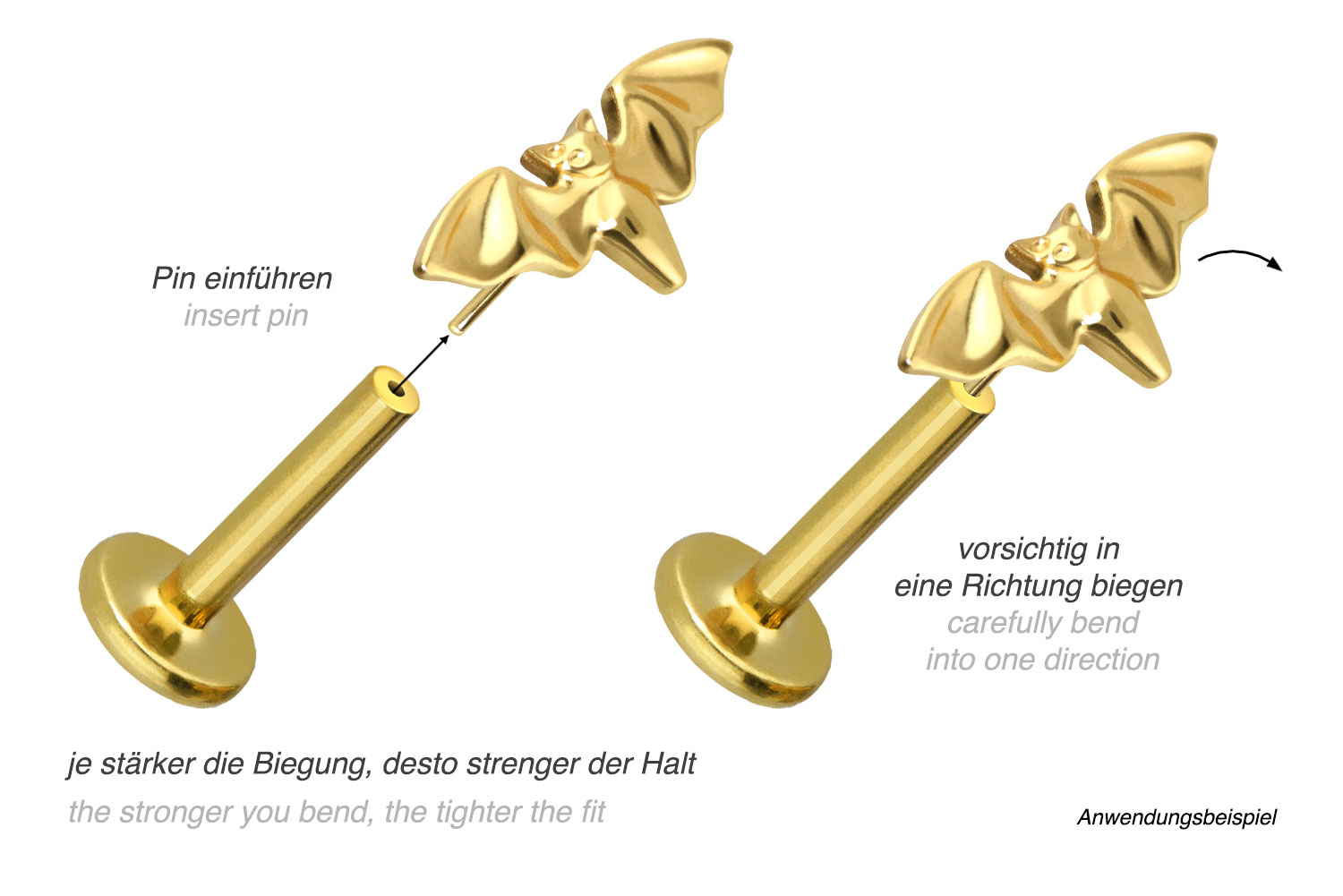 zeitlos schönen Aufsatz mit Push Pin in Form einer Fledermaus, hat eine Stabstärke von entweder 1 oder 1,2 mm