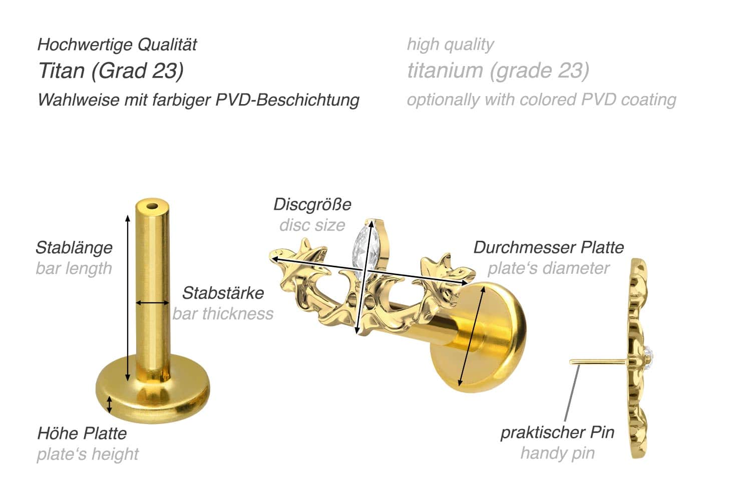 Dieses einzigartige Labret ist aus hochwertigem Titan gefertigt, das