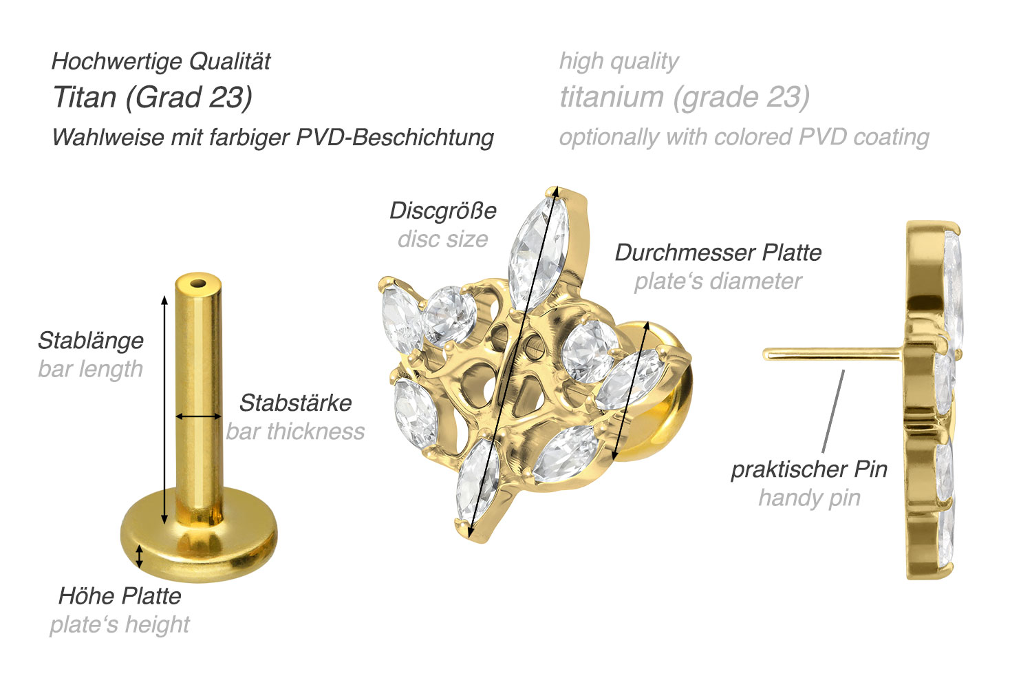 PVD-Beschichtung gewährleistet wird. Das Labret verfügt über einen