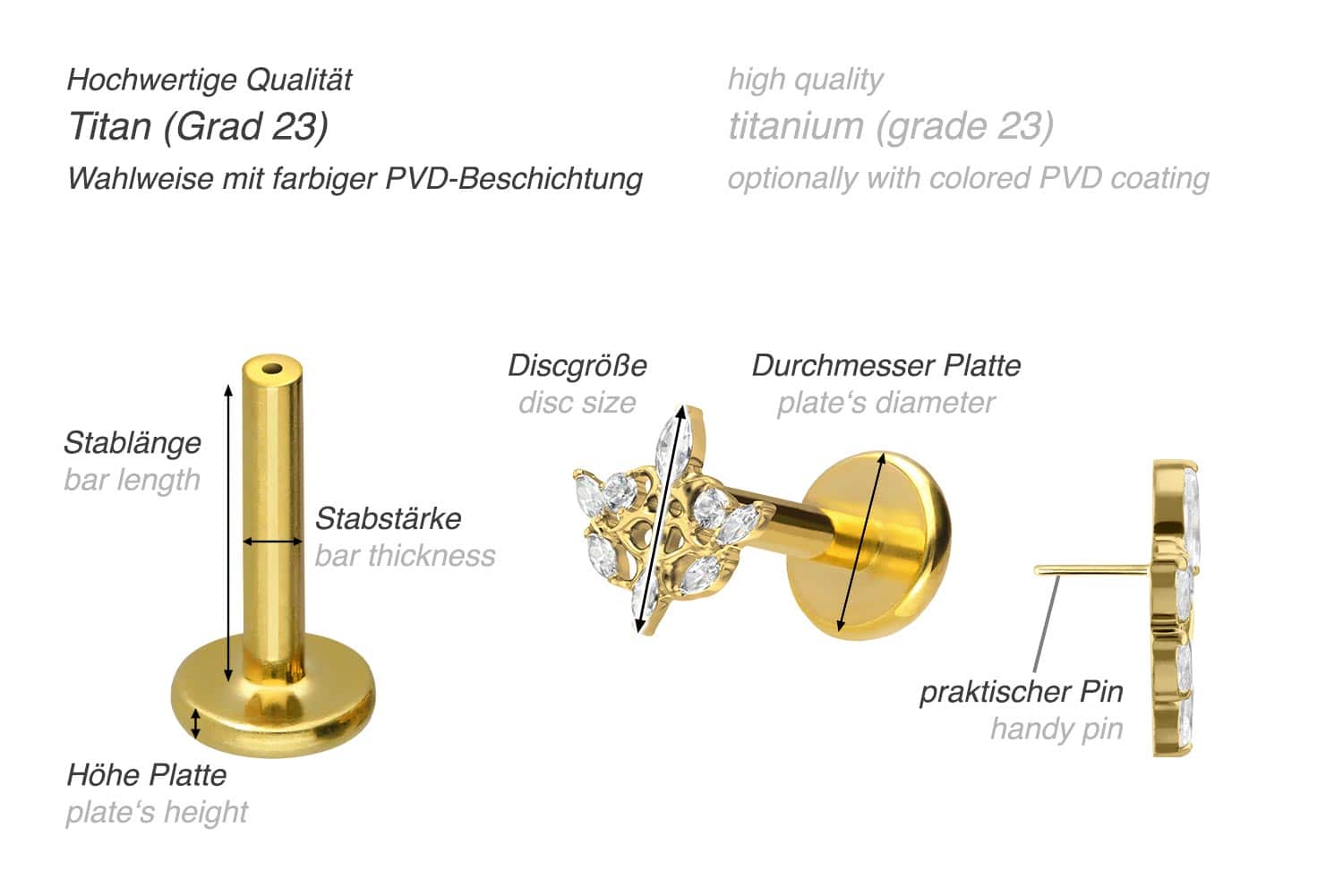 Dieses einzigartige Labret ist aus hochwertigem Titan gefertigt, das