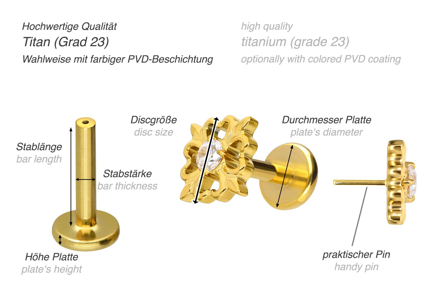 PVD-Beschichtung gewährleistet wird. Das Labret verfügt über einen