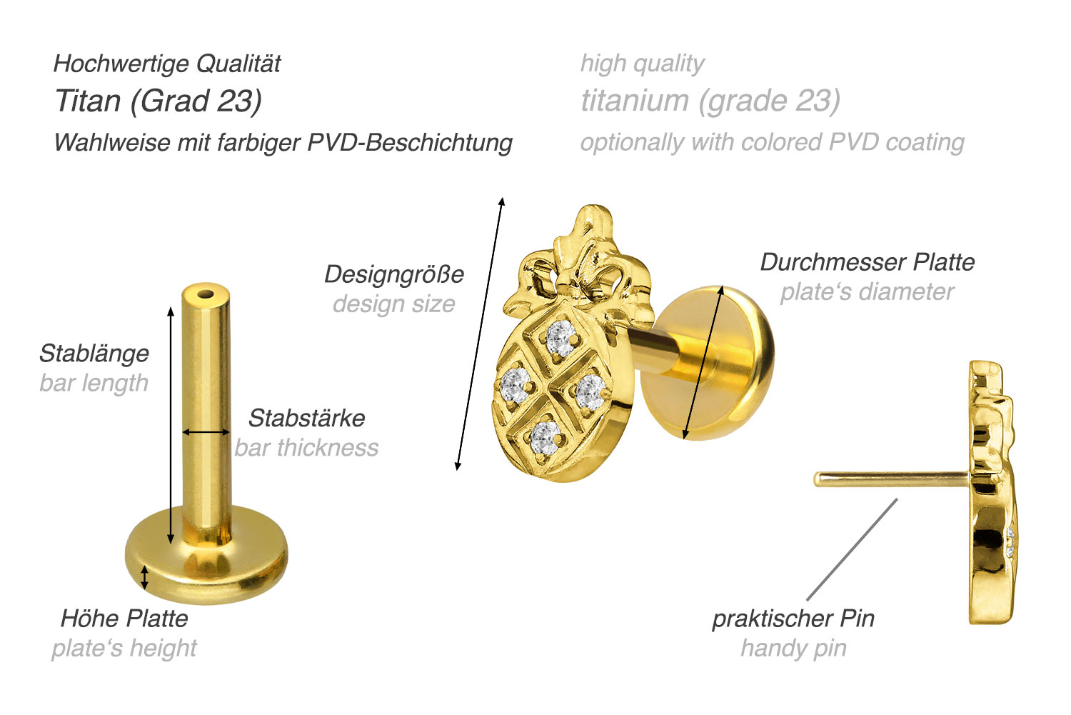 PVD-Beschichtung gewährleistet wird. Das Labret verfügt über einen