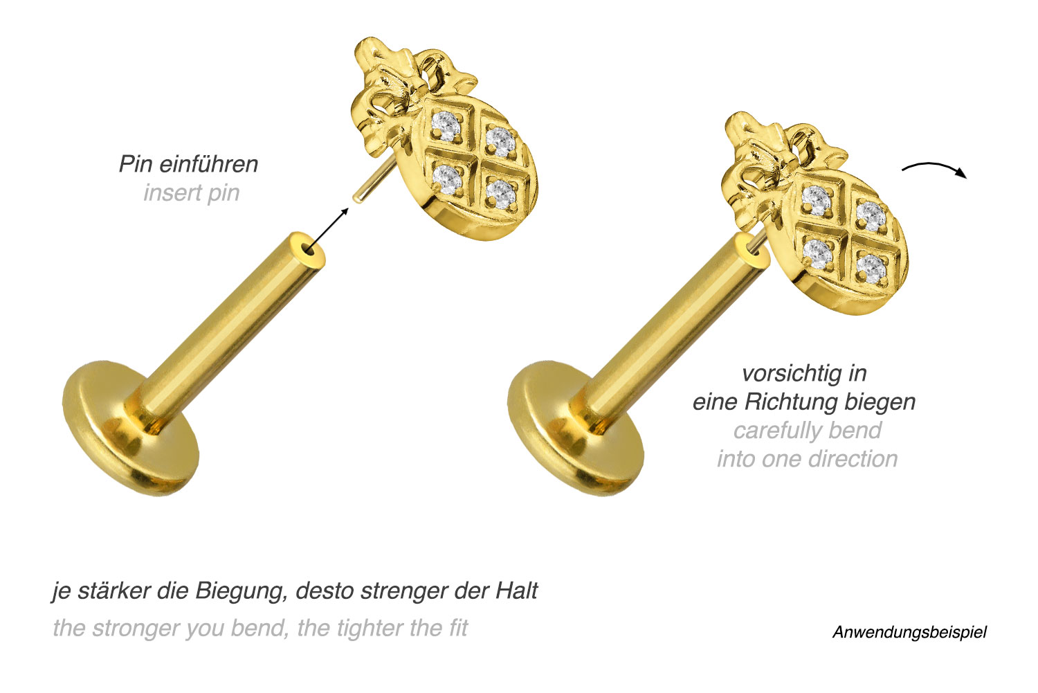 Durch die verwendete Push Fit Technologie kann das Labret nach Belieben mit all unseren Aufsätzen mit Push Pin kombiniert werden.