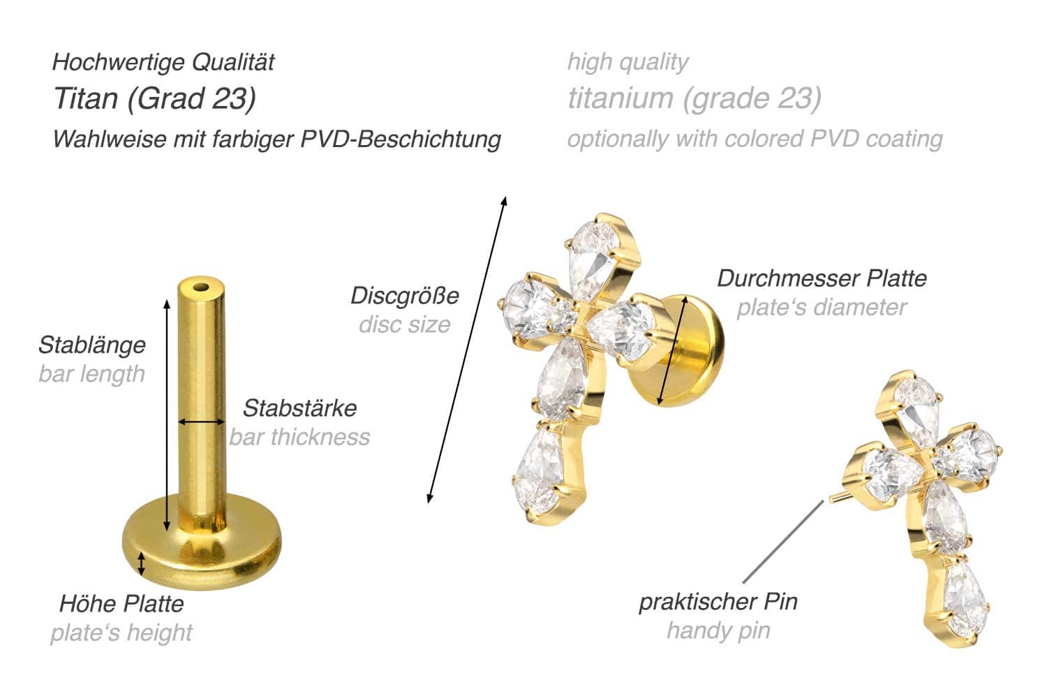 Titan Labret mit Push Fit KRISTALLKREUZ