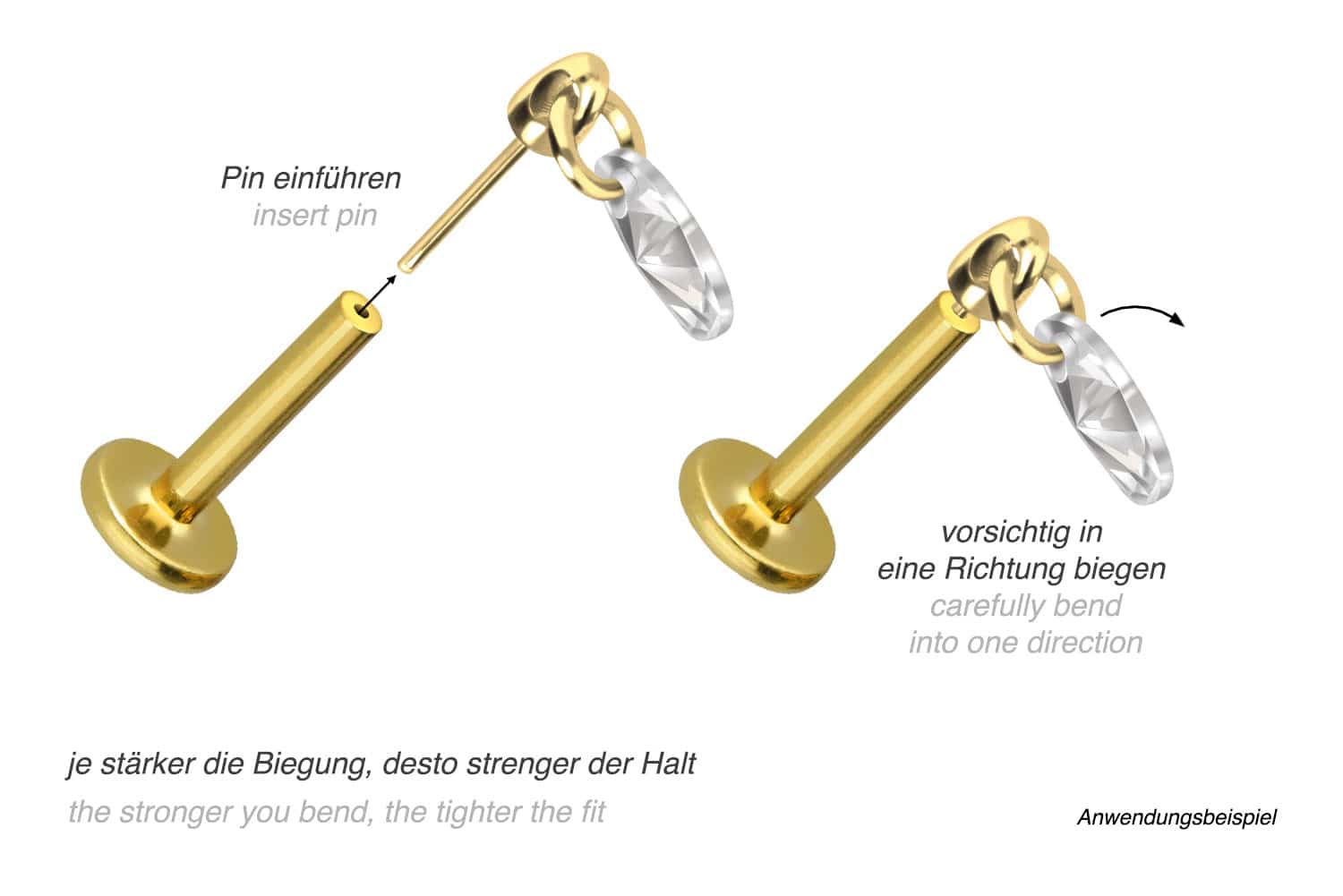 Titan Labret mit Push Fit KRISTALLOVAL