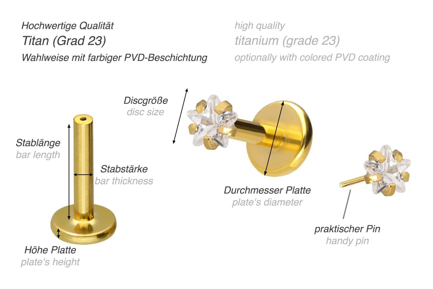 PVD-Beschichtung gewährleistet wird. Das Labret verfügt über einen