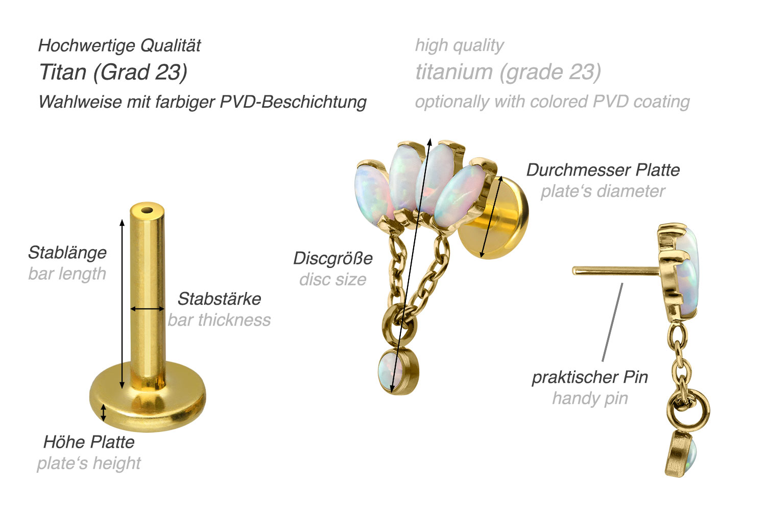 PVD-Beschichtung gewährleistet wird. Das Labret verfügt über einen