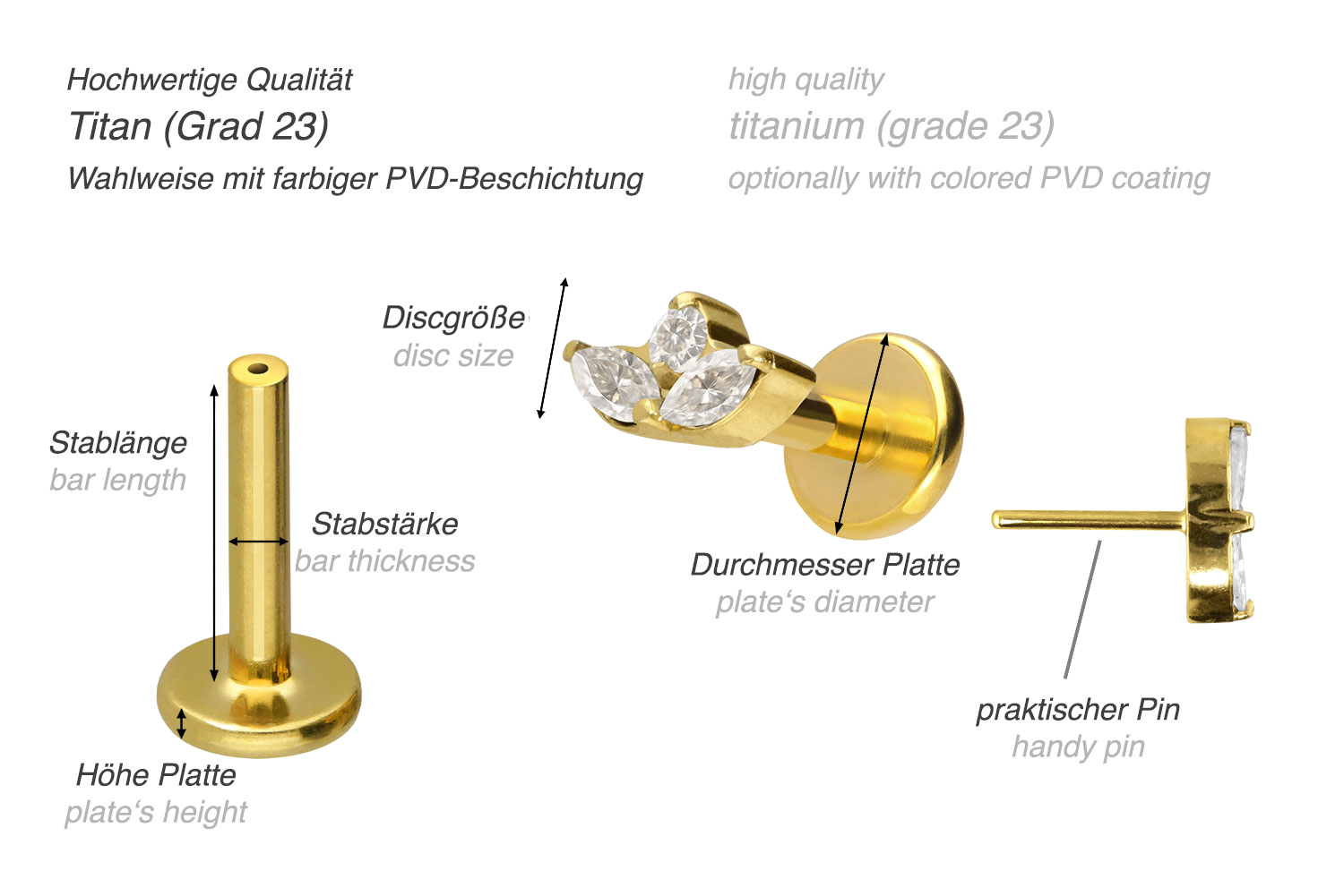 PVD-Beschichtung gewährleistet wird. Das Labret verfügt über einen