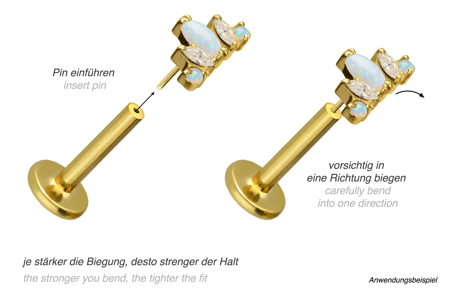 Durch die verwendete Push Fit Technologie kann das Labret nach Belieben mit all unseren Aufsätzen mit Push Pin kombiniert werden.