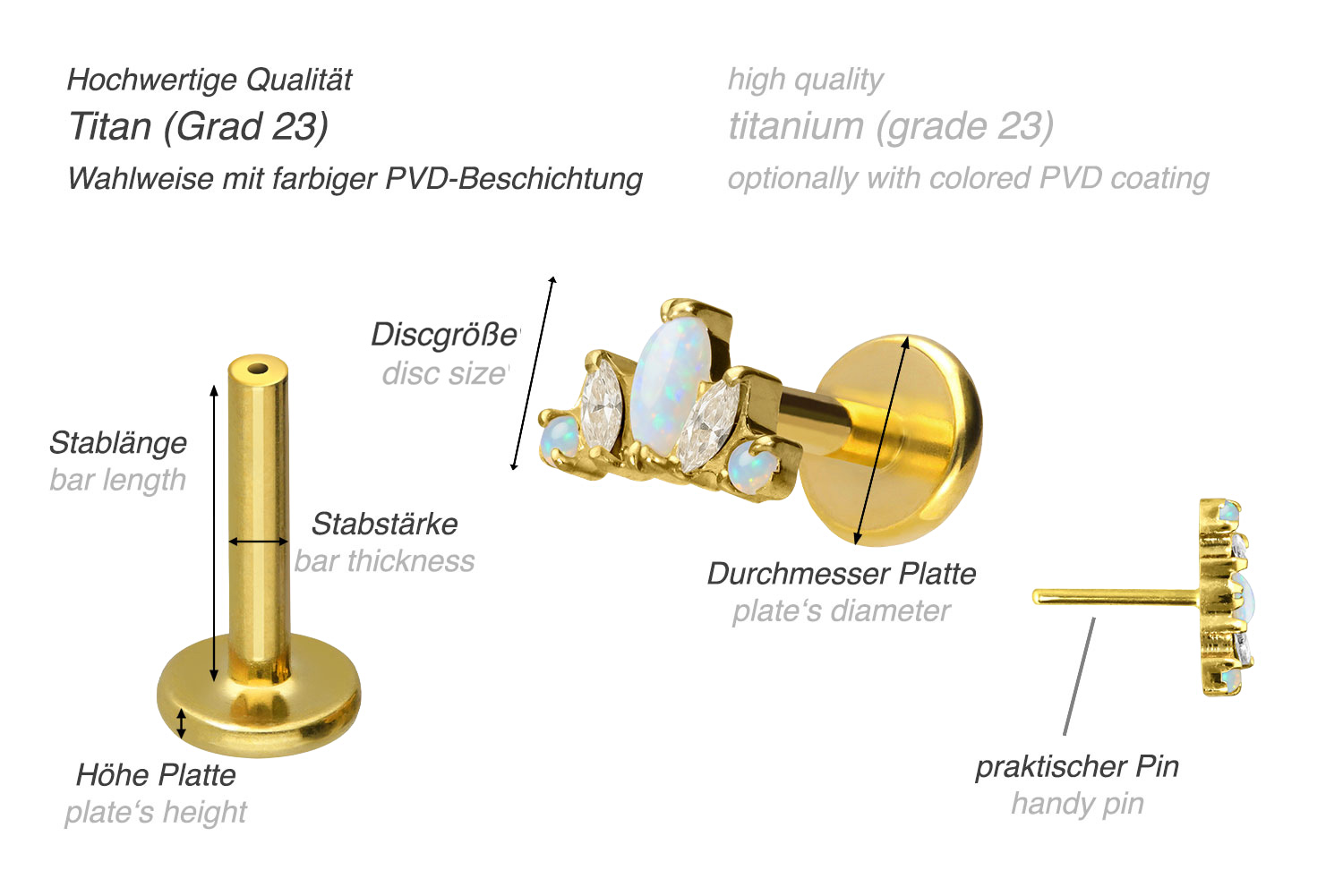 Dieses einzigartige Labret ist aus hochwertigem Titan gefertigt, das