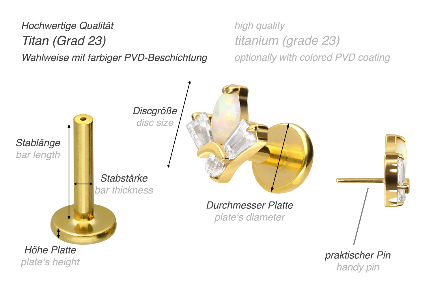 Dieses einzigartige Labret ist aus hochwertigem Titan gefertigt, das