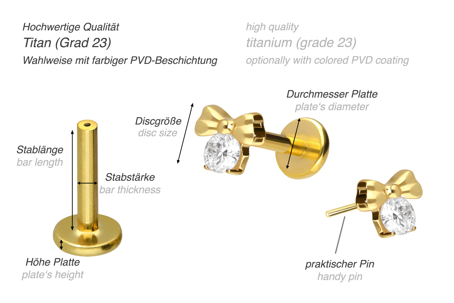 PVD-Beschichtung gewährleistet wird. Das Labret verfügt über einen