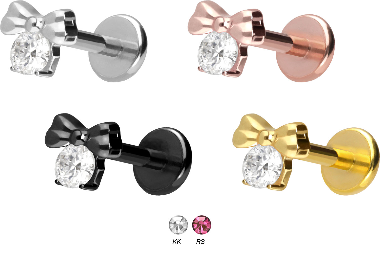 zeitlos schönen Aufsatz mit Push Pin in Form einer Schleife, welche mit einem funkelnden Kristall verziehrt ist, hat eine Stabstärke von entweder 1 oder 1,2 mm