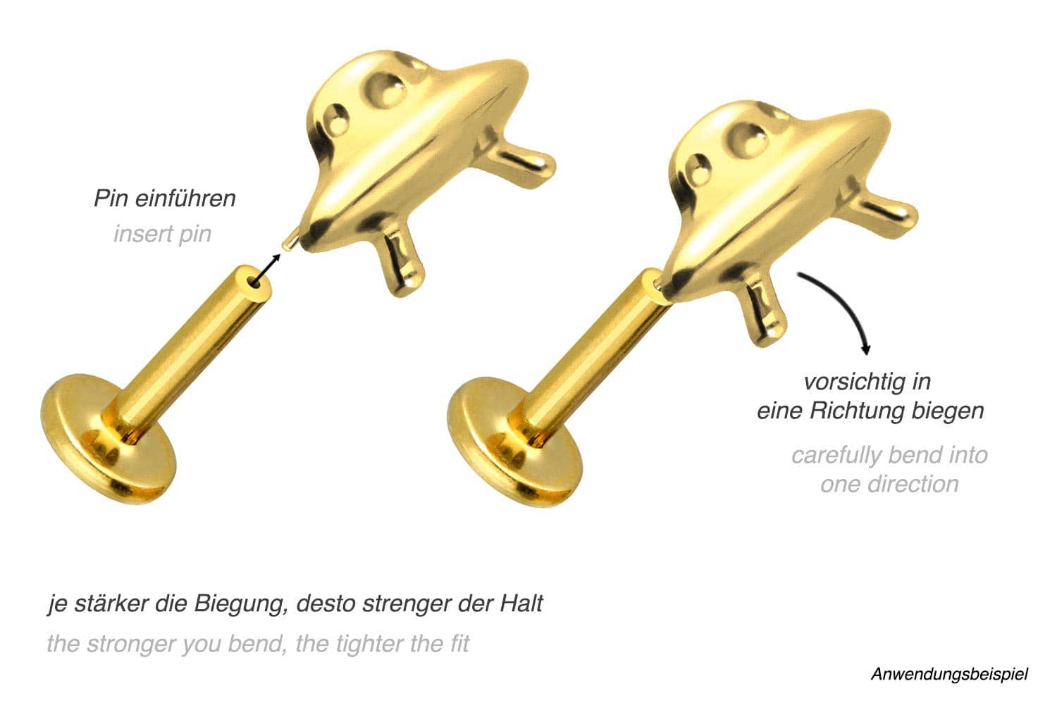 Durch die verwendete Push Fit Technologie kann das Labret nach Belieben mit all unseren Aufsätzen mit Push Pin kombiniert werden.