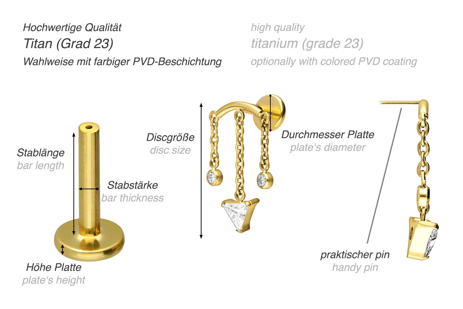 PVD-Beschichtung gewährleistet wird. Das Labret verfügt über einen