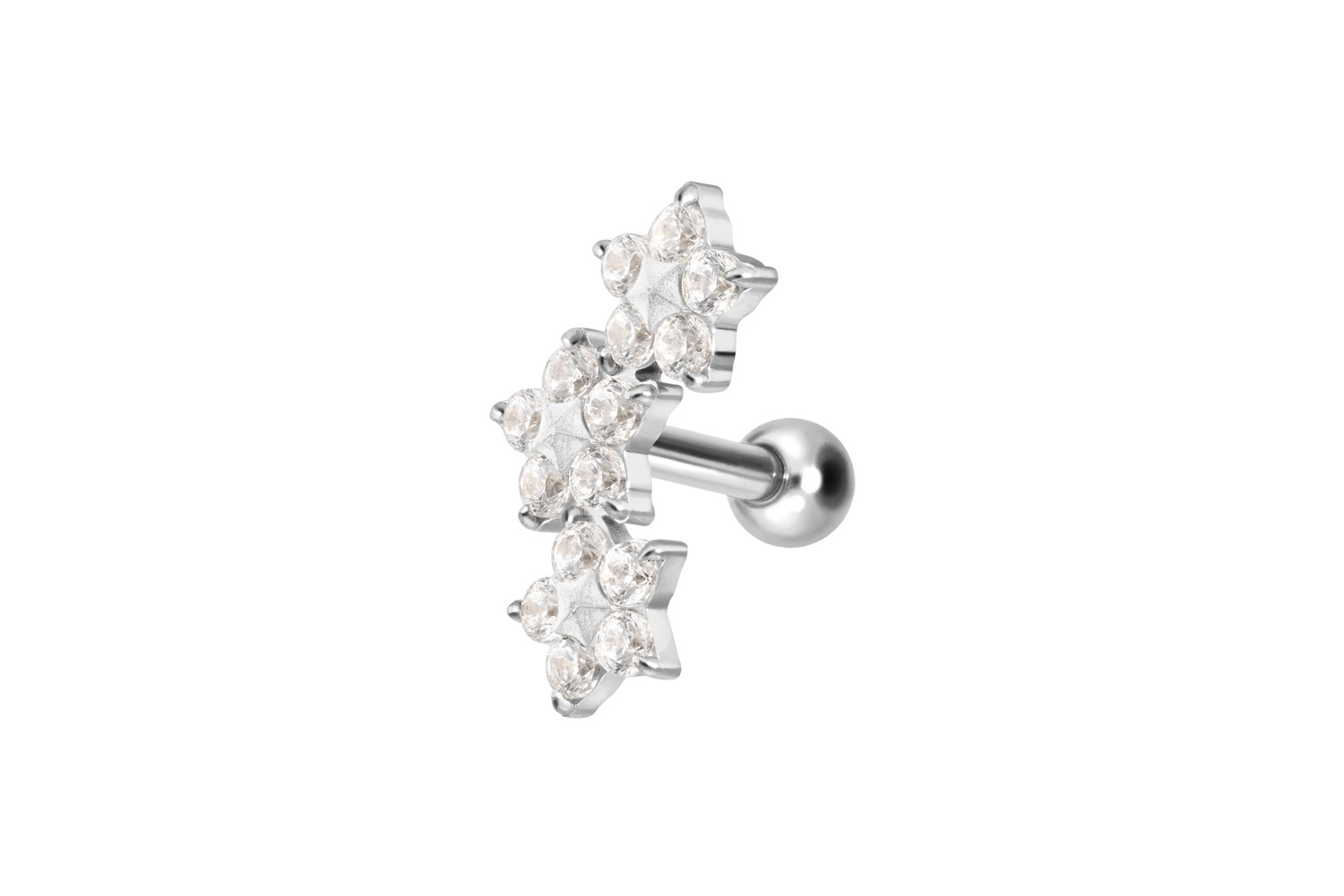 Titan - Ohrpiercing mit Innengewinde 3 Kristallblumen