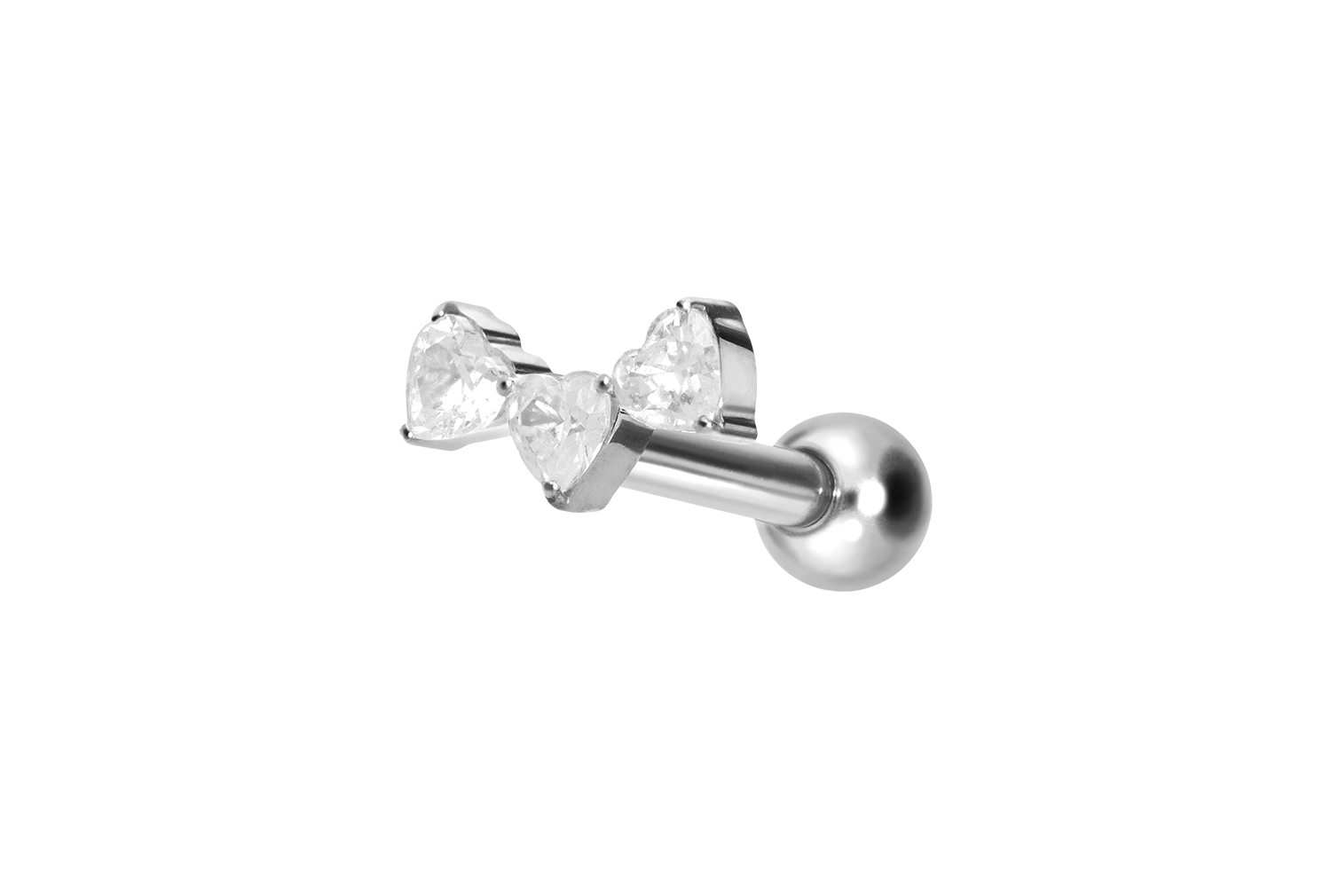 Titan - Ohrpiercing mit Innengewinde 3 Kristallherzen