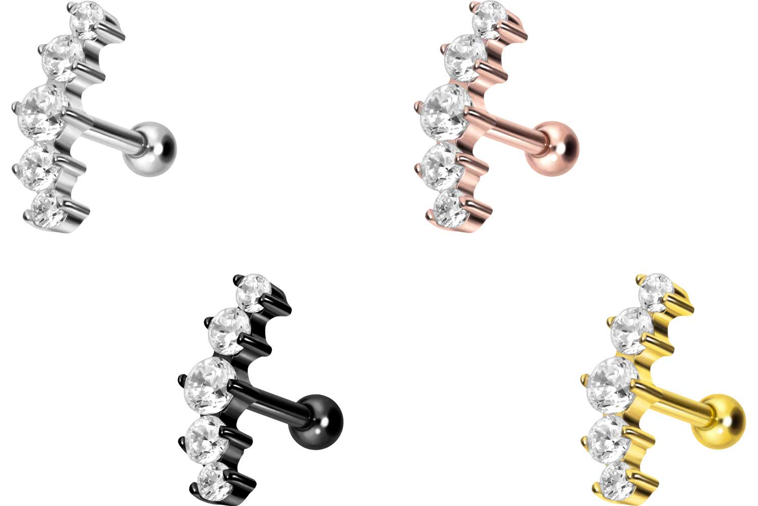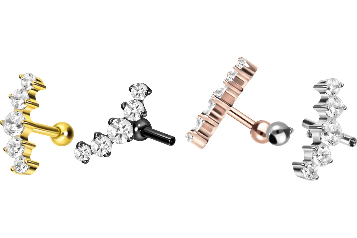Titan - Ohrpiercing mit Innengewinde 5 eingefasste Kristalle