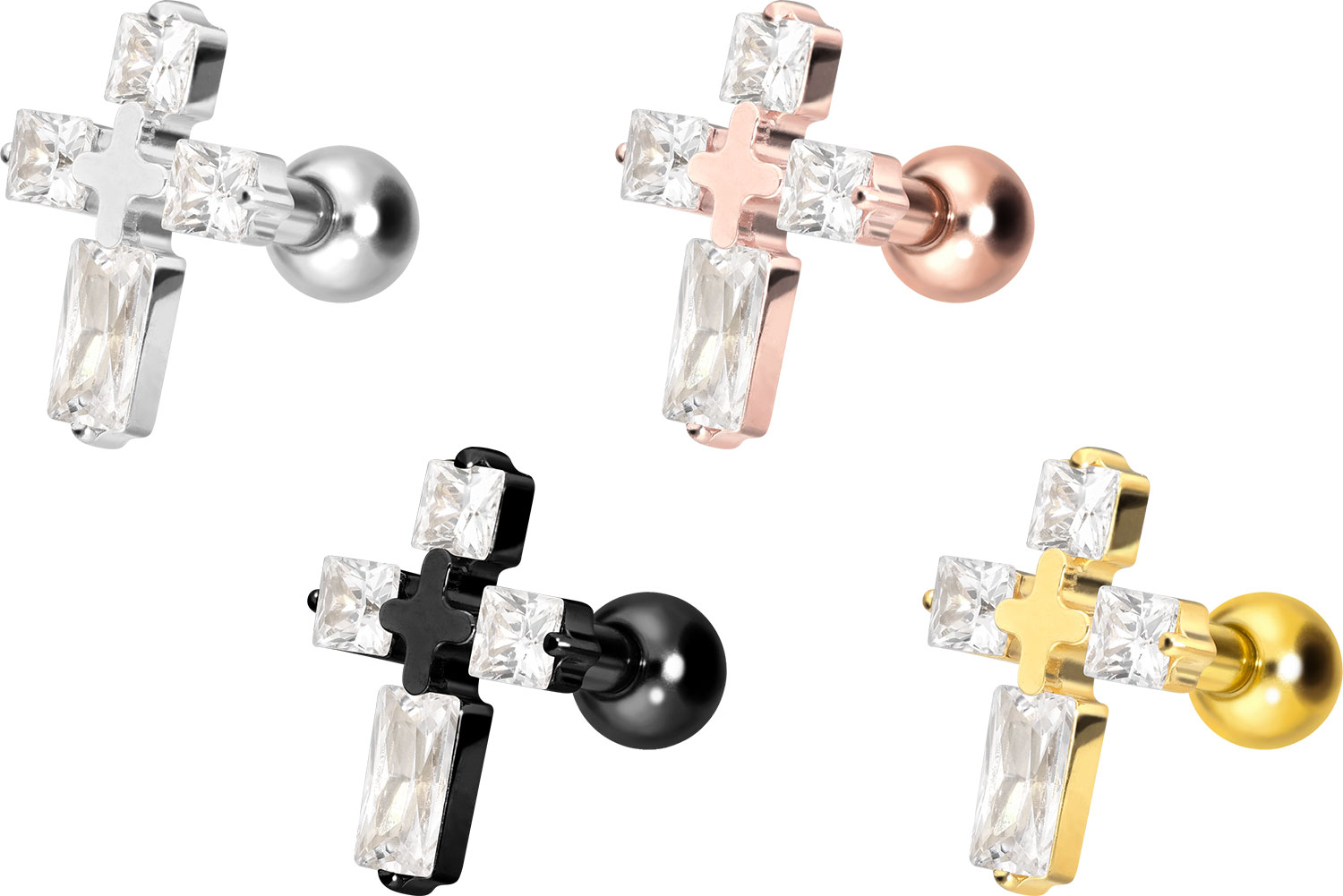 Titan Ohrpiercing mit Innengewinde KRISTALLKREUZ