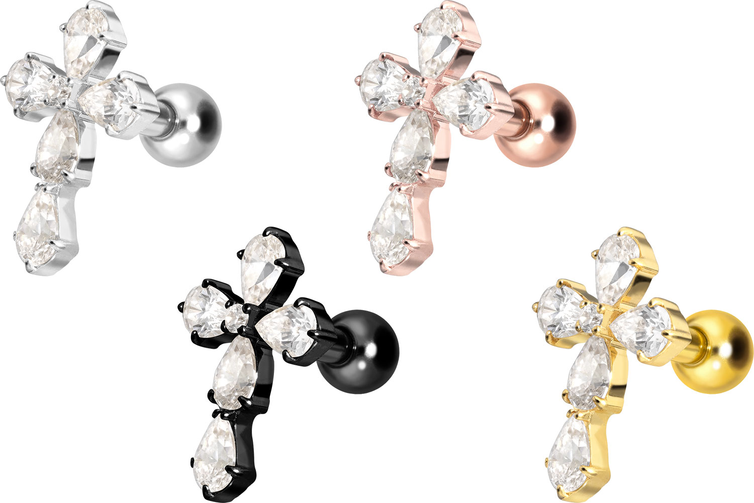 Titan Ohrpiercing mit Innengewinde KRISTALLKREUZ