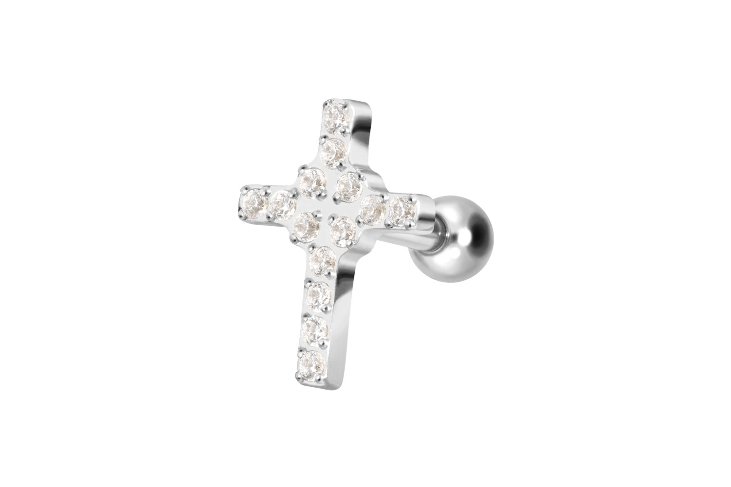 Titan Ohrpiercing mit Innengewinde KRISTALLKREUZ